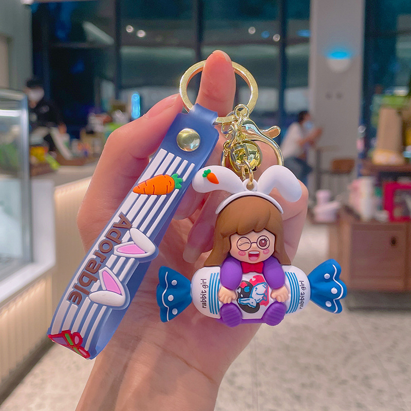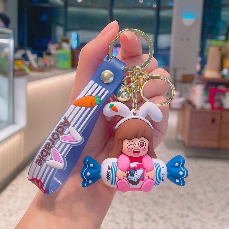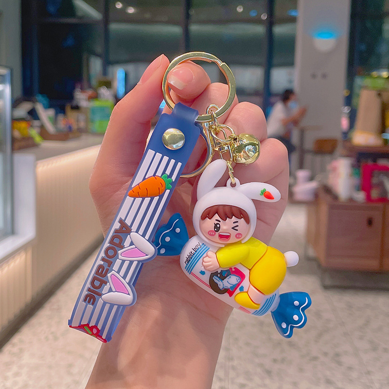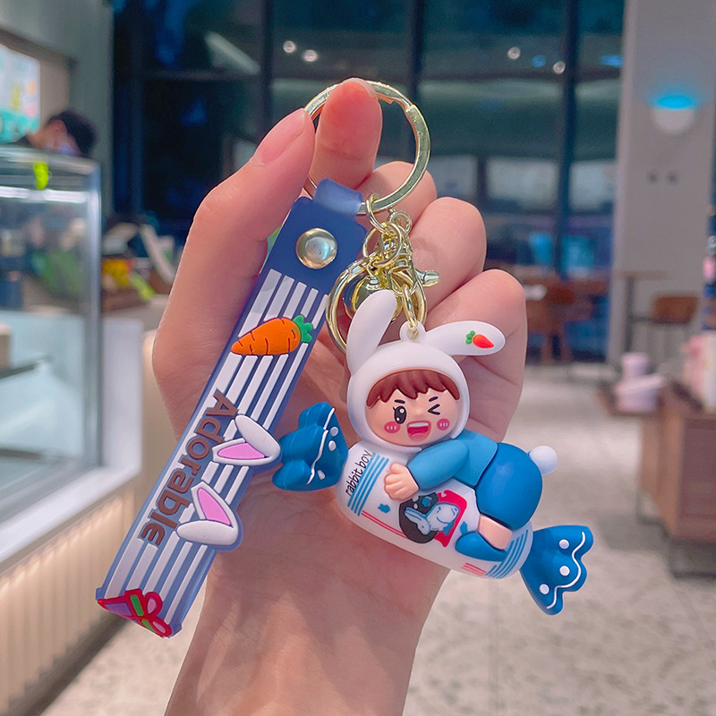 하얀 토끼 소년 소녀 귀여운 열쇠 고리 커플 인형 펜던트 열쇠 고리 가방 펜던트 자동차 열쇠 고리