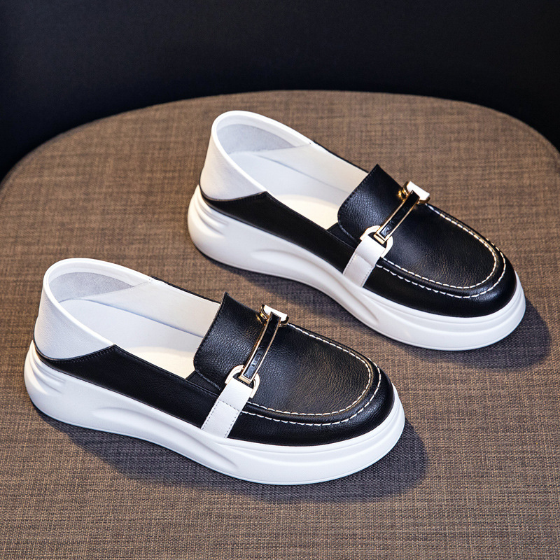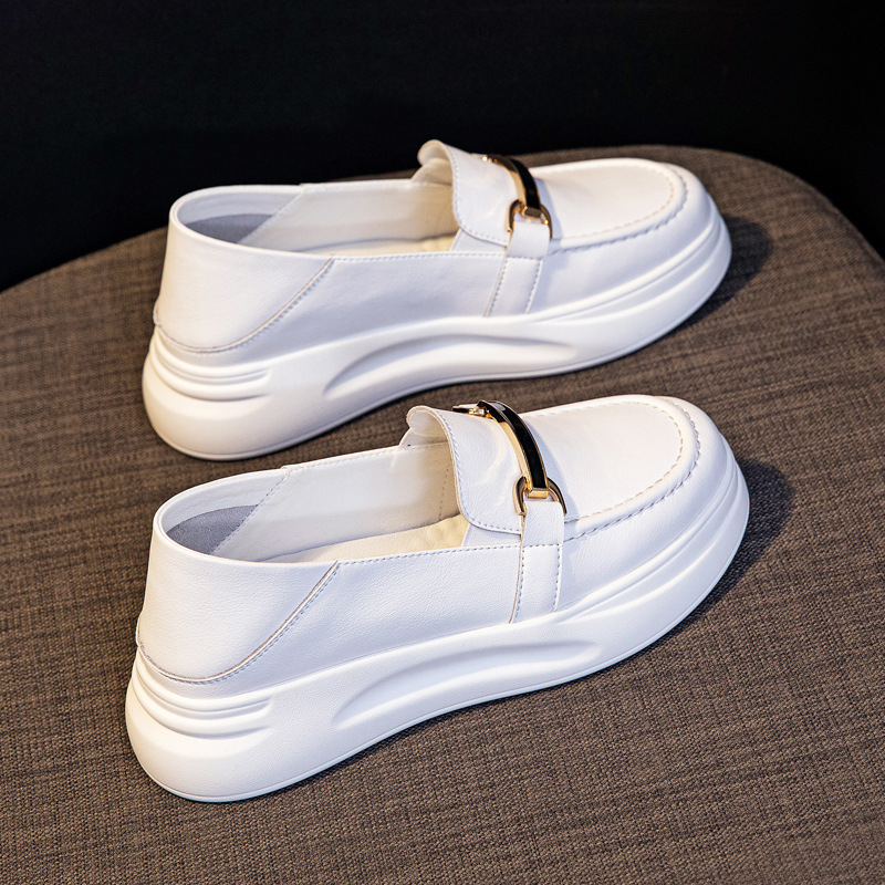 여성을위한 정품 가죽 흰색 신발 가을 새로운 두꺼운 밑창 투웨어 슬립 온 로퍼 캐주얼 다목적 고조 신발스토어 가기