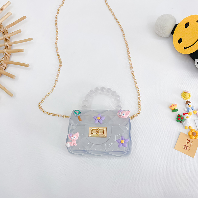 어린이 가방 새로운 2022 인터넷 연예인 소녀의 투명 젤리 백 휴대용 미니 소형 가방 귀여운 체인 크로스 바디 백
