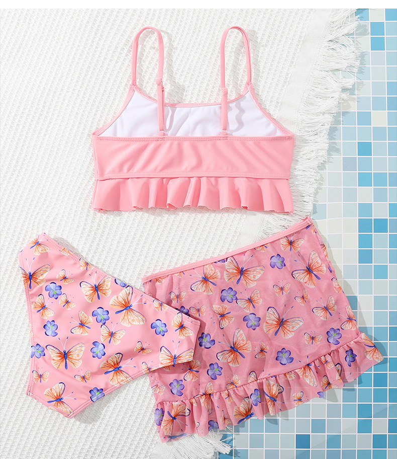 2023 새로운 어린이 스플릿 수영복 여아 쓰리피스 크로스 보더 아마존 새로운 짧은 치마 큰 어린이 수영복