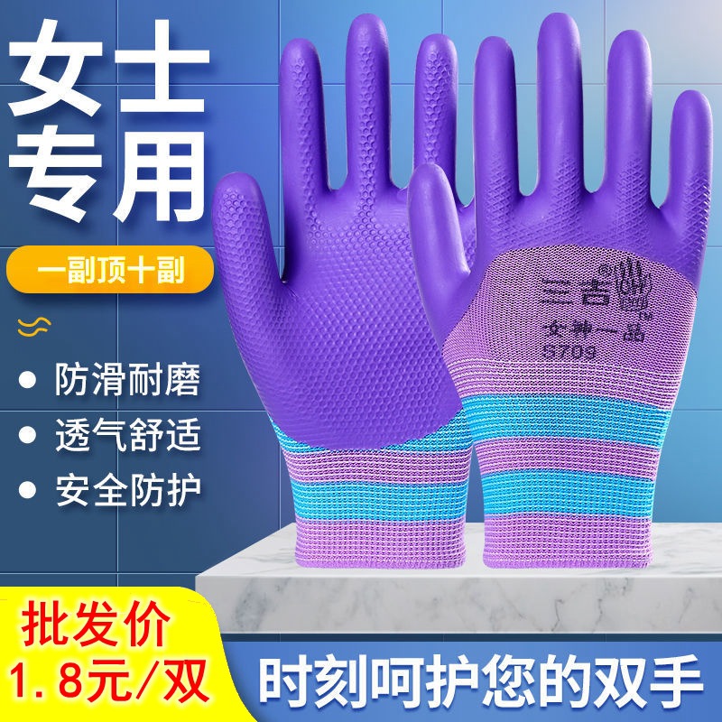 산지 S709 숙녀 스몰 사이즈 노동 보호 내마모성 두꺼운 라텍스 미끄럼 방지 방수 건설 현장 작업 보호 장갑스토어 가기