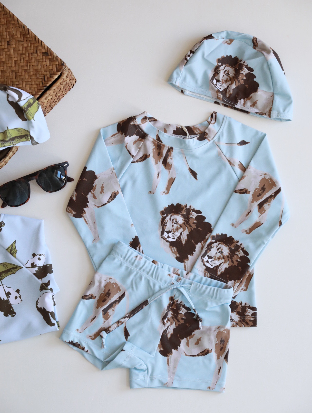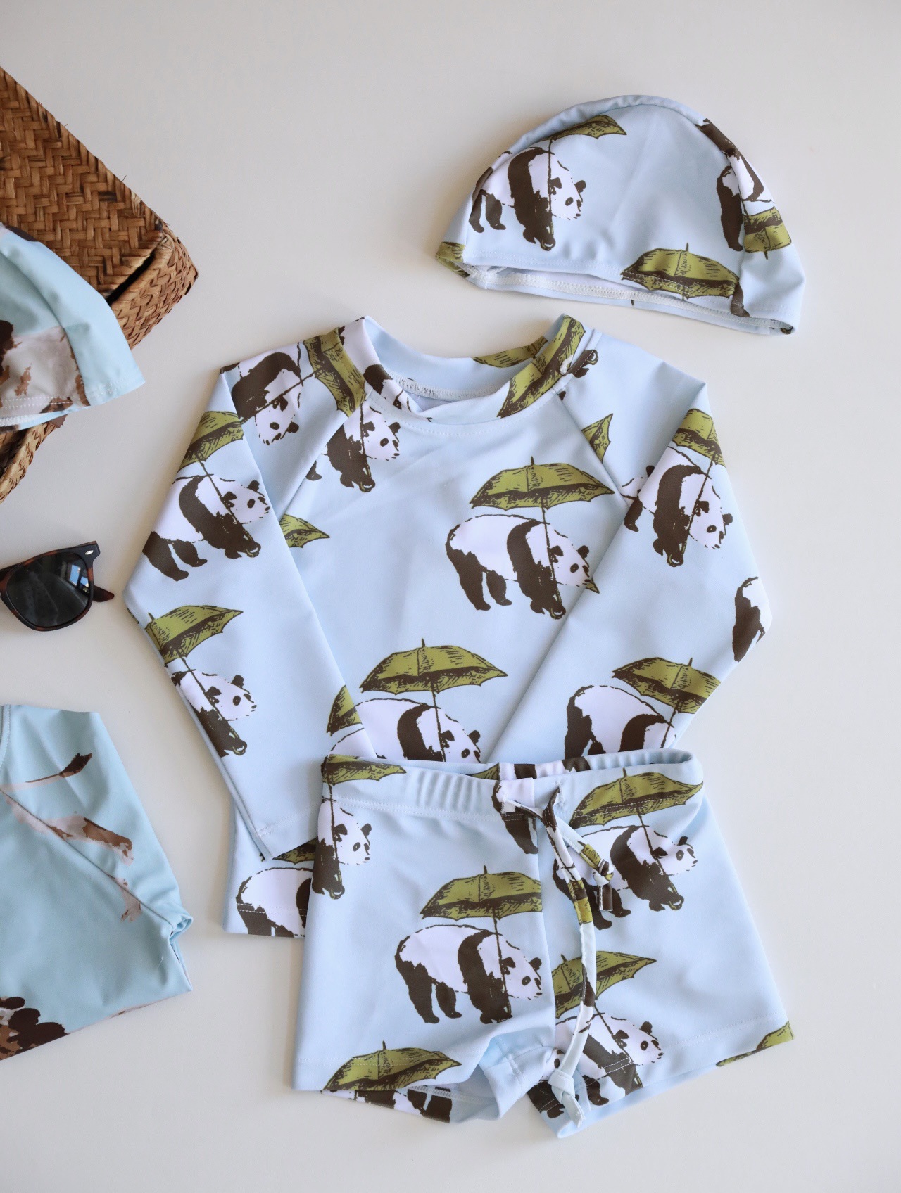 소년 만화 팬더 스플릿 수영복 여름 어린이 스타일 수영복 아기 긴팔 태양 보호 휴가 수영복스토어 가기