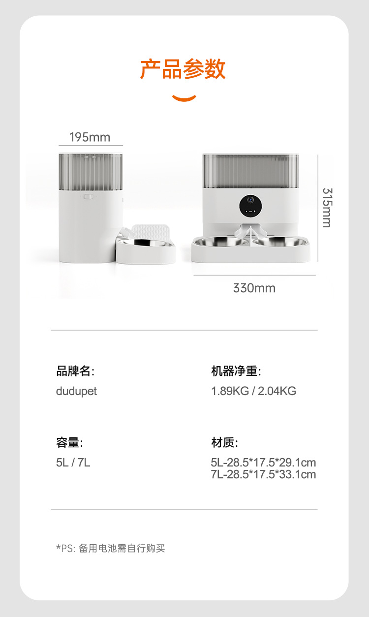 Du Du의 새로운 업그레이드 애완 동물 피더 5L 대용량 지능형 고양이 사료 개 사료 타이밍 및 정량적 고양이 피더스토어 가기