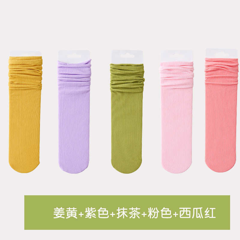 양말 여성용 봄과 여름 얇은 더미 양말 일본 캔디 컬러 중간 길이 양말 컬 벨벳 아이스 양말 jk 유행 양말