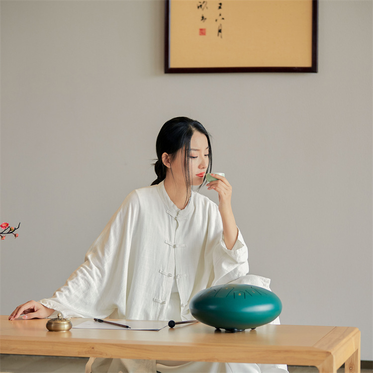 25가지 가을 면마 여성복 신상품 린넨 샌드워싱 부드럽고 우아한 선(禪) 스타일 수제 차복 여성용 자외선 차단 가디건 셔츠