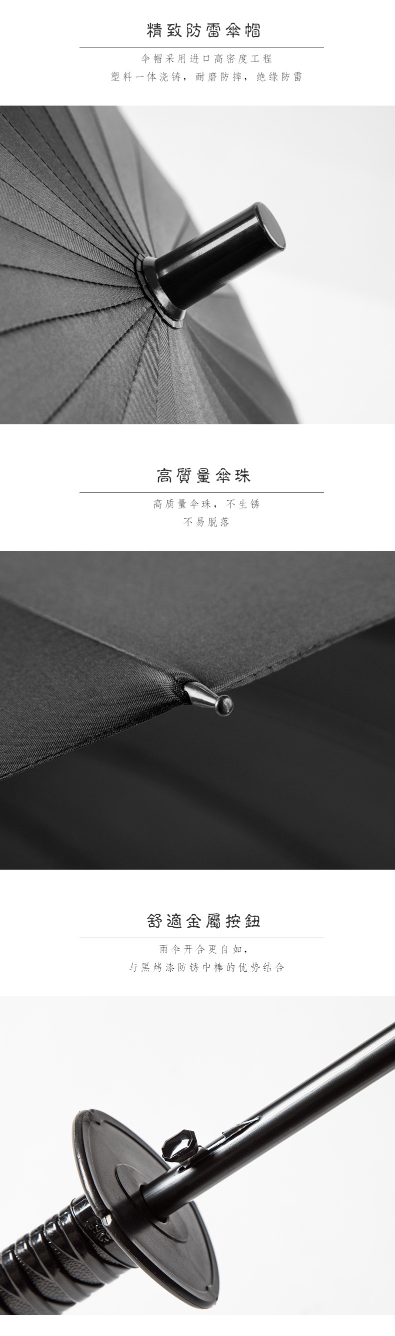 • [실버 야오 텍스처] 16 본 나이프 우산 중괄호 우산 커버-클래식 블랙