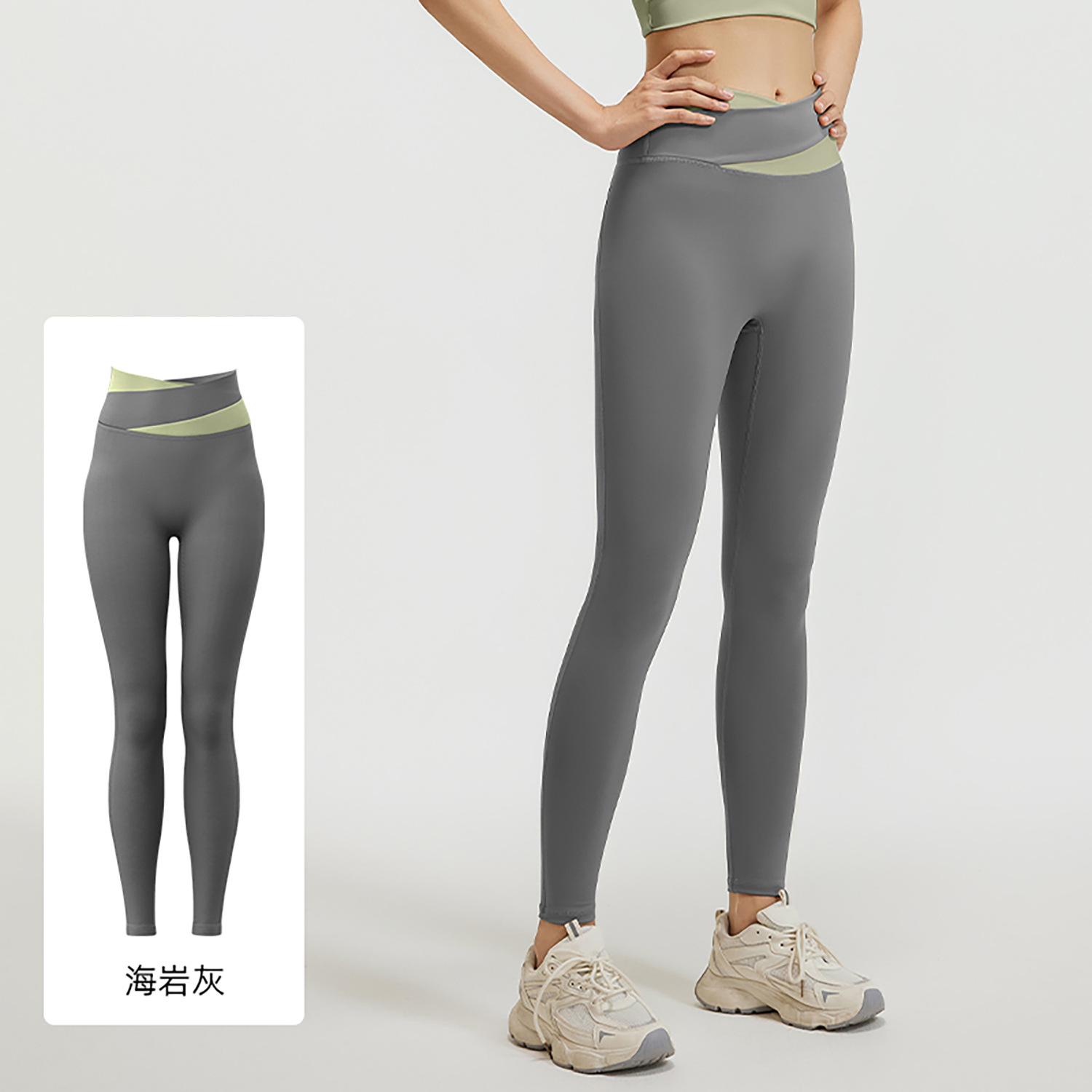 컬러 매칭 하이 웨이스트 요가 바지 여성용 엉덩이 리프팅 복부 탄성 크로스 허리 피트니스 바지 러닝 스포츠 스타킹스토어 가기