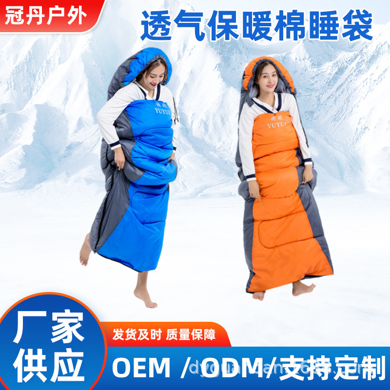 跨境可拼接四季通用野营睡袋 户外旅行露营透气保暖棉睡袋单人