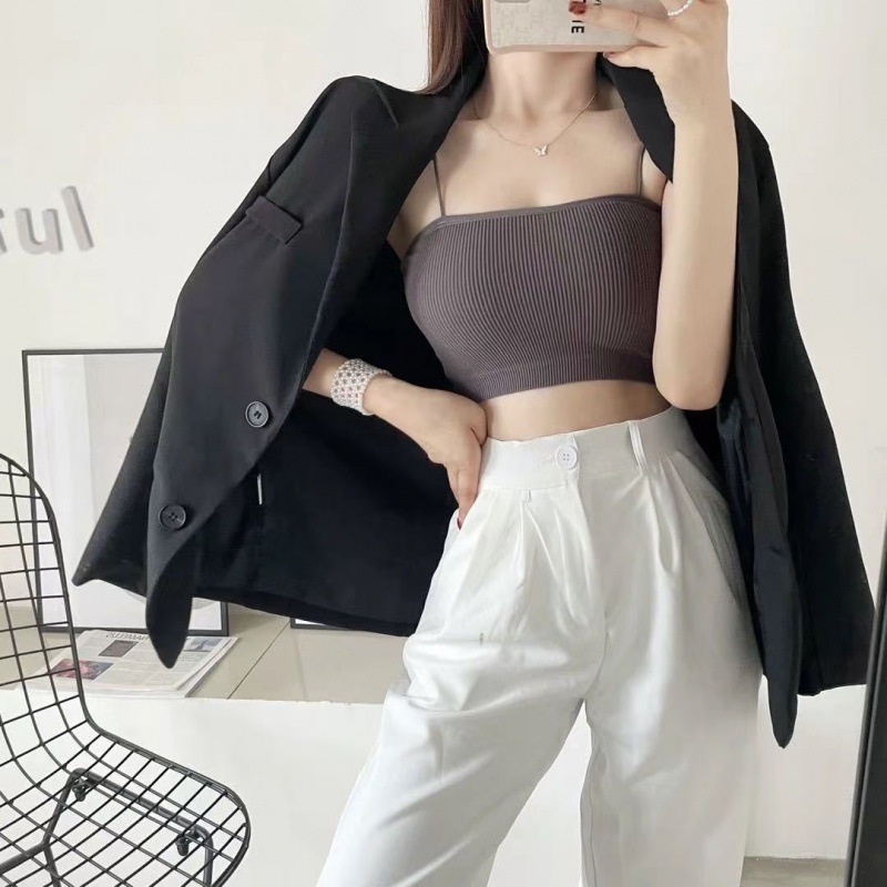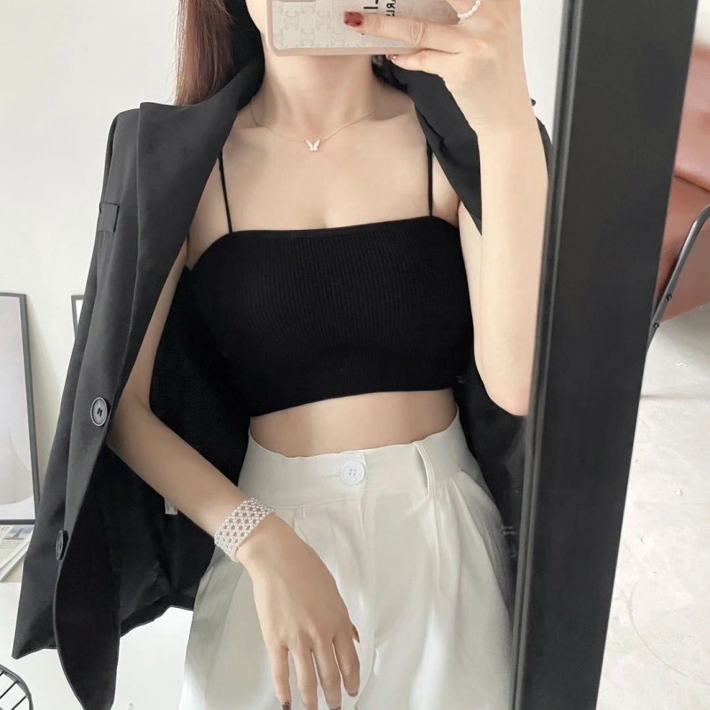 2022 봄과 여름 작은 캐미솔 가슴 패드 원피스 베이스 셔츠 화이트 슬림핏 아우터 짧은 섹시 이너웨어