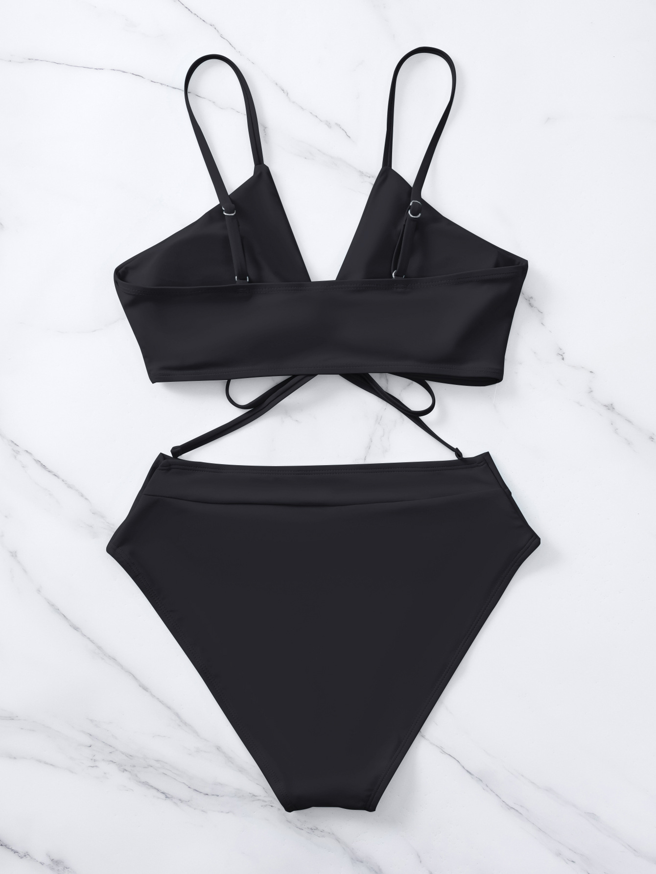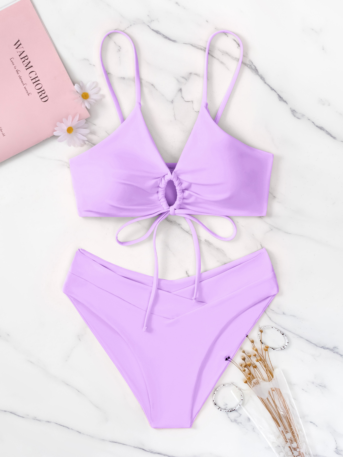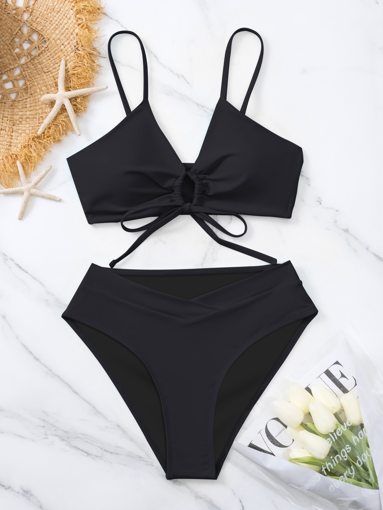 2025 새로운 비키니 유럽과 미국의 대외 무역 아마존 솔리드 컬러 레이스 업 섹시 비키니 분할 수영복 여성스토어 가기