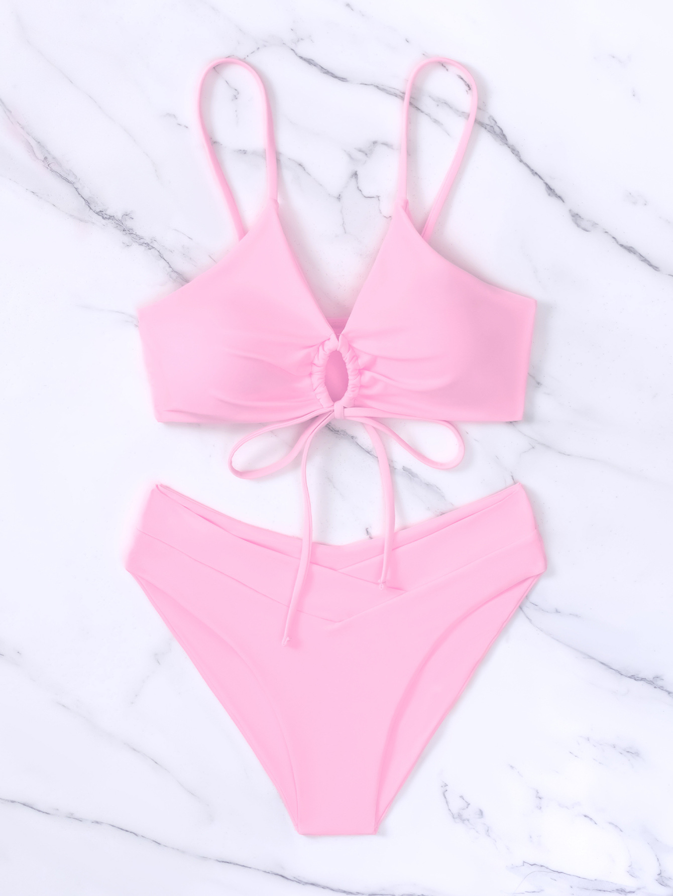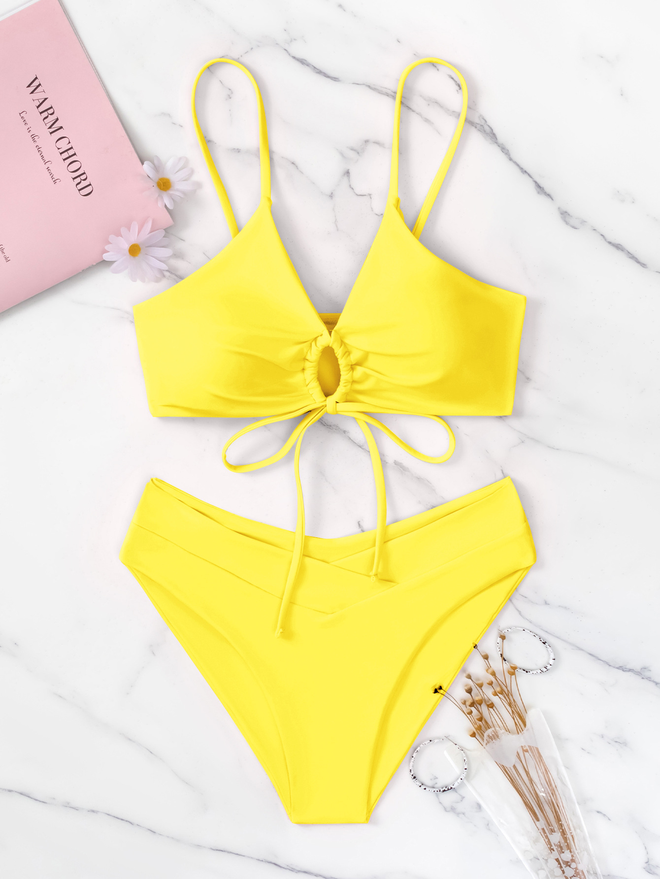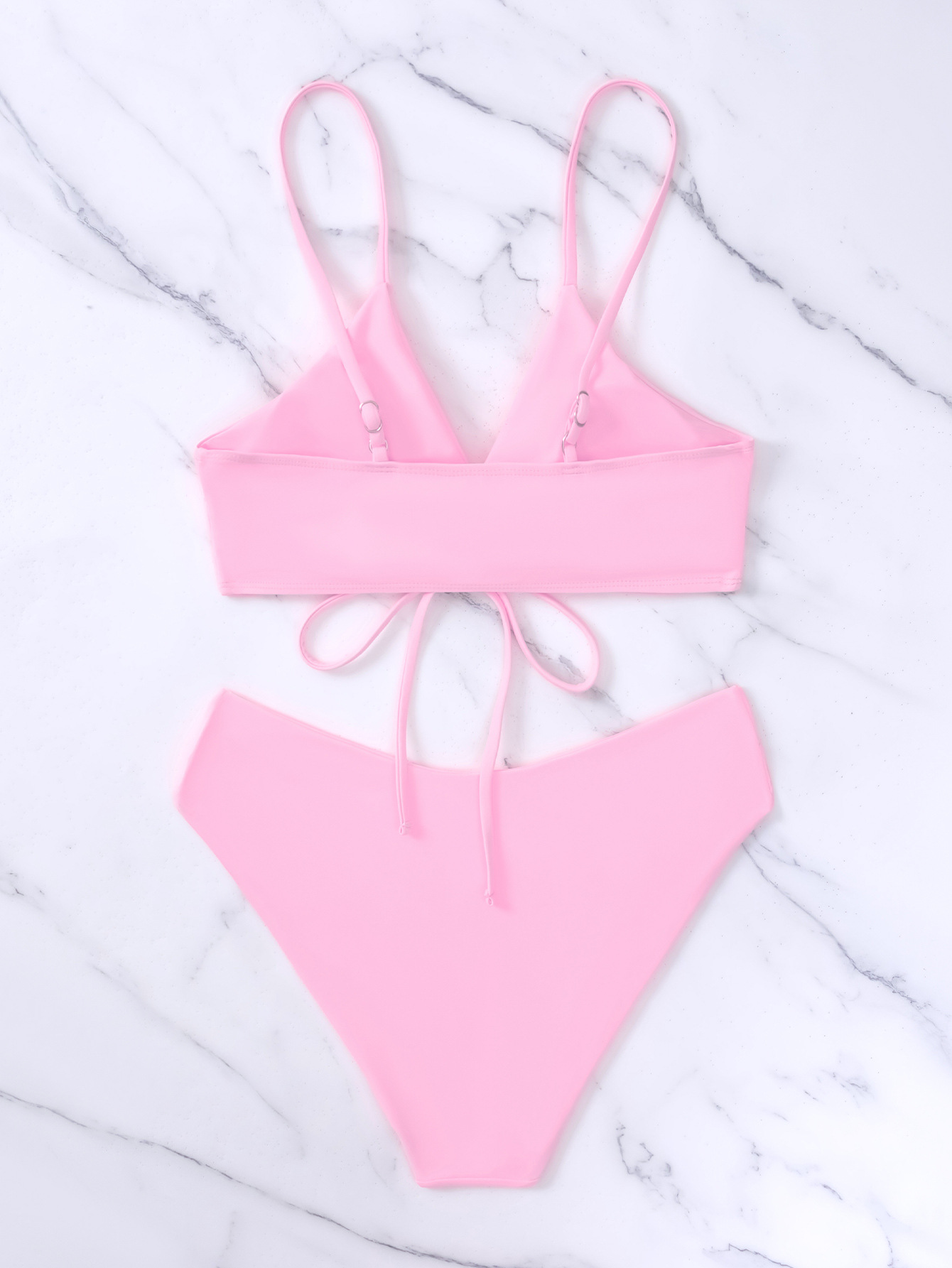 2025 새로운 비키니 유럽과 미국의 대외 무역 아마존 솔리드 컬러 레이스 업 섹시 비키니 분할 수영복 여성스토어 가기
