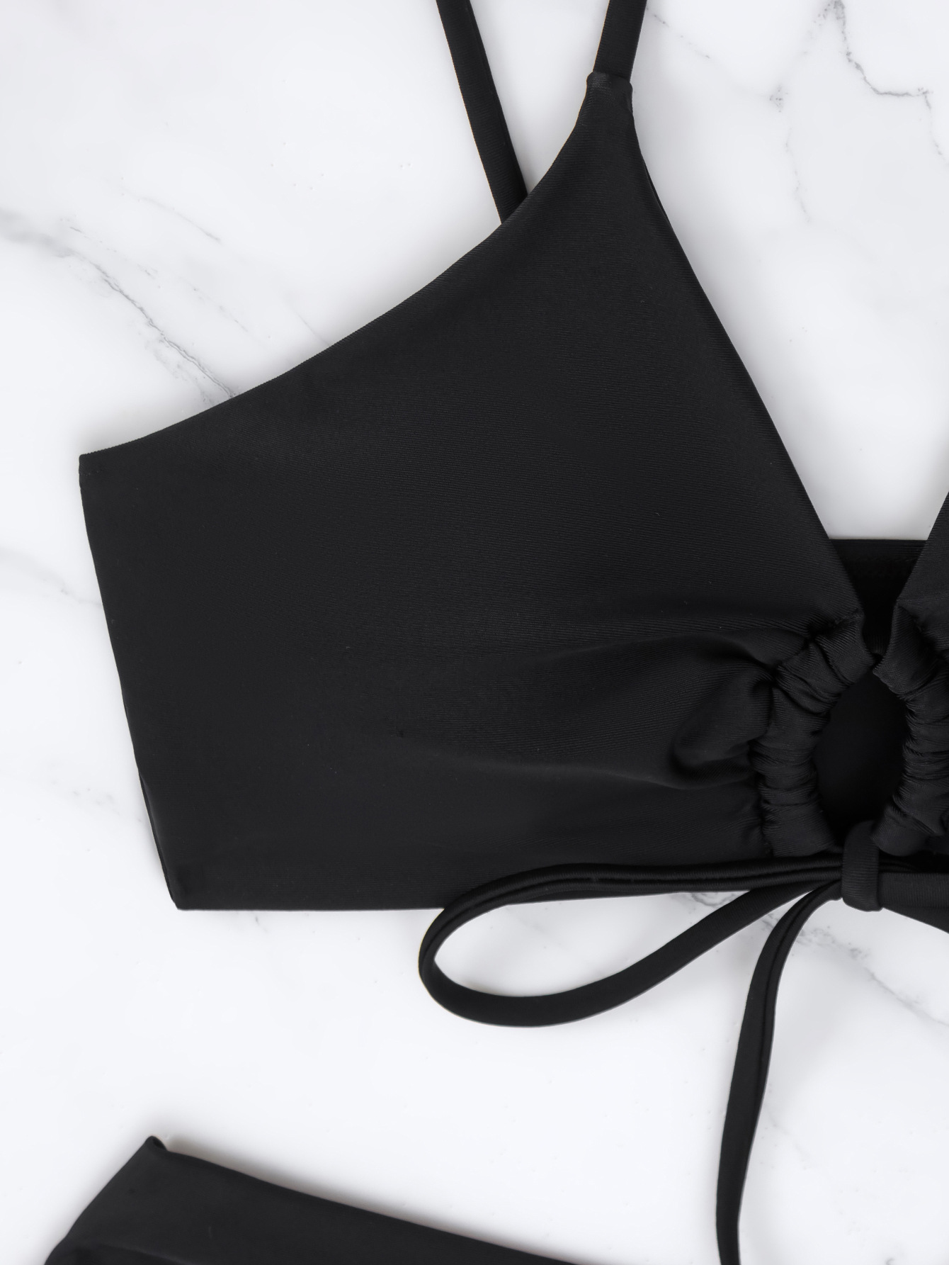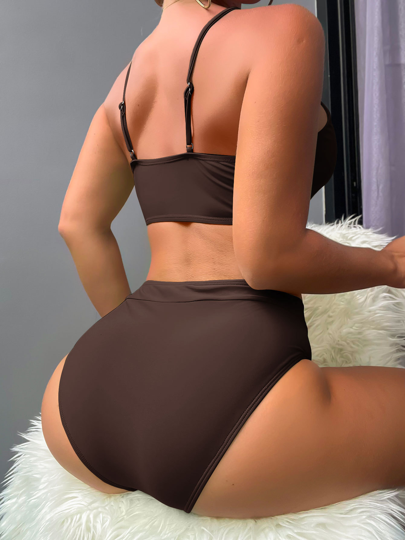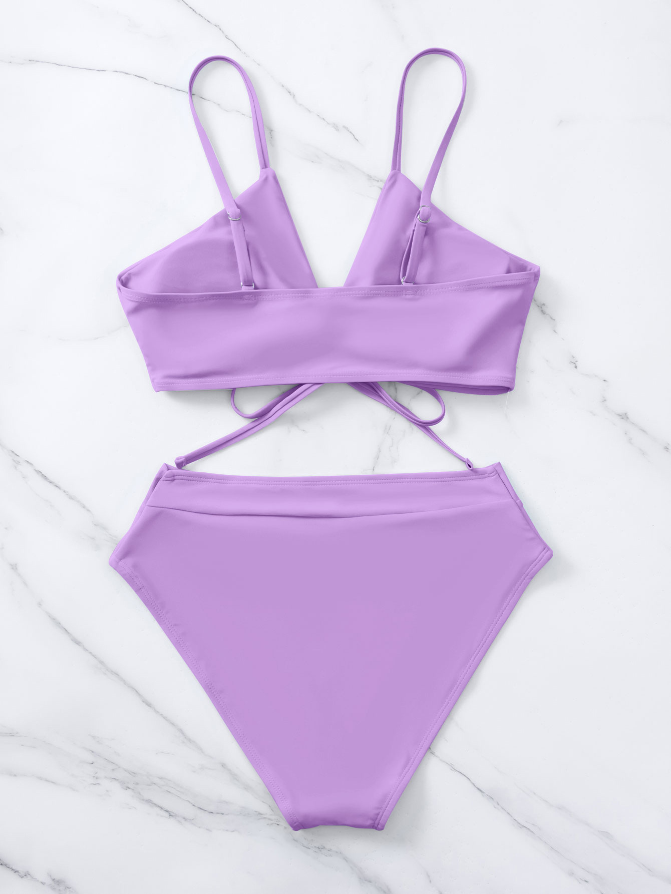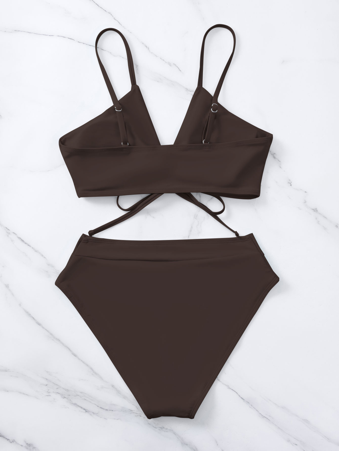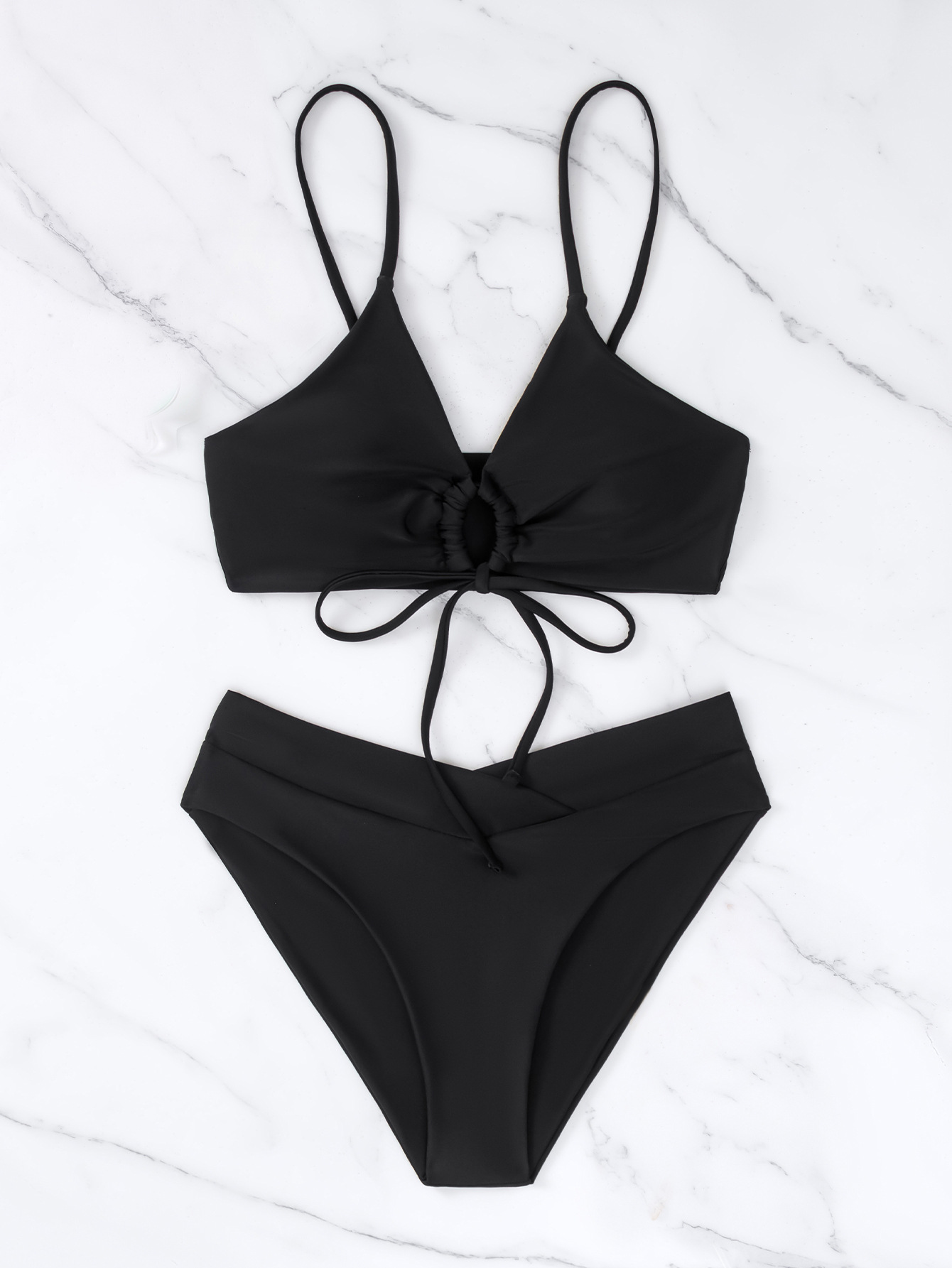 2025 새로운 비키니 유럽과 미국의 대외 무역 아마존 솔리드 컬러 레이스 업 섹시 비키니 분할 수영복 여성