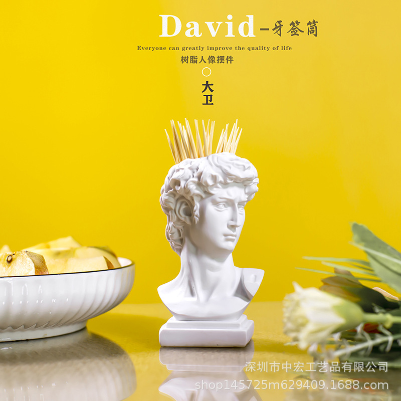 데이비드 조각 석고 머리 수지 이쑤시개 홀더 메이크업 린스 펜 홀더 창조적 인 패션 귀여운 테이블 장식품