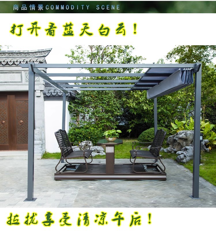 테라스 마당 슬라이딩 알루미늄 합금 차양막 야외 정원 야외 차양 수동 개폐식 텐트 가정용스토어 가기