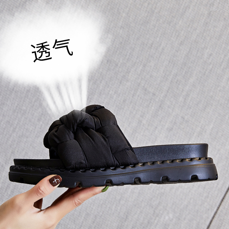 2022 여름 새로운 스타일 빵 슬리퍼 여성용 겉옷 짠 두꺼운 밑창 샤넬 스타일 샌들 캐주얼 패션 모든 매치 여성 신발