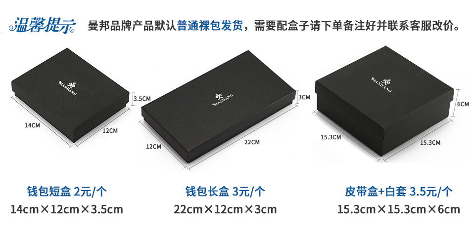 钱包盒装发货标准:单品拷贝纸+环保袋+OPP透明袋+泡沫袋+卡片+礼盒+OPP透明袋贴封