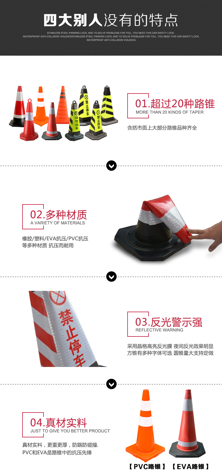 70cm 고무 도로 콘 EVA 반사 도로 콘 사각 콘 아이스크림 양동이 안전 경고란 PVC 플라스틱 도로 콘