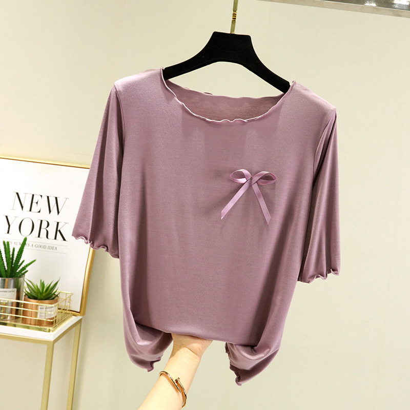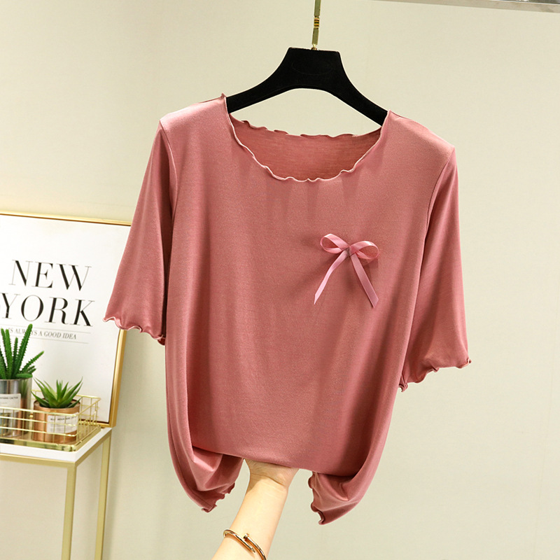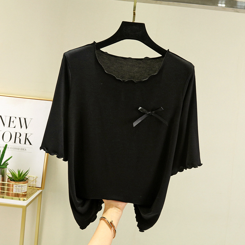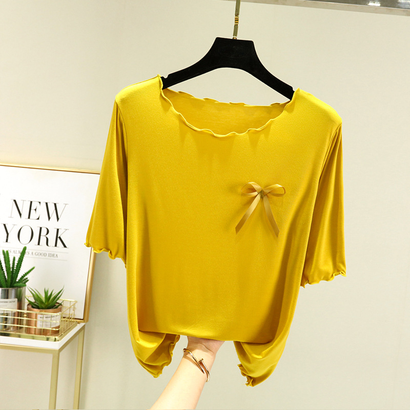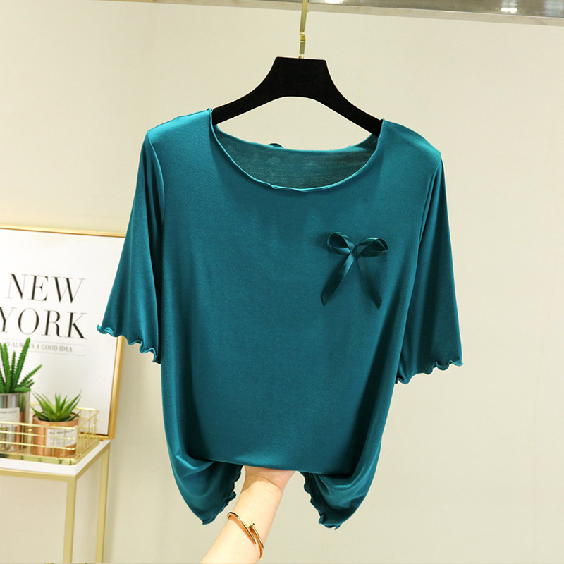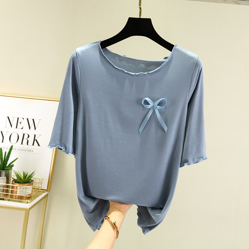 혼 슬리브 티셔츠 여성용 여름 서양 스타일 모든 매치 베이스 셔츠 한국 스타일 활 곰팡이 모달 반팔 여성 패션스토어 가기