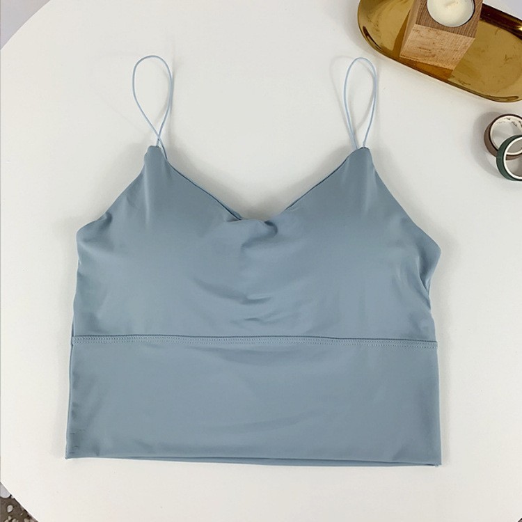 2022 여름 한국 스타일 아이스 실크 원활한 속옷 여성의 가슴 포장 아름다운 등 안티 러닝 라이트 스트랩 가슴 패드 겉옷 캐미솔 조끼