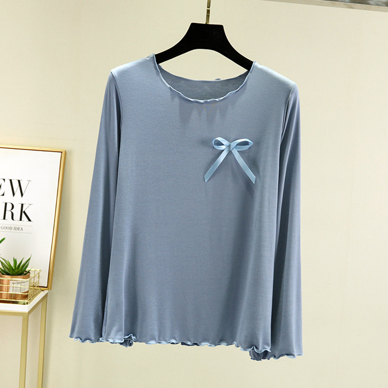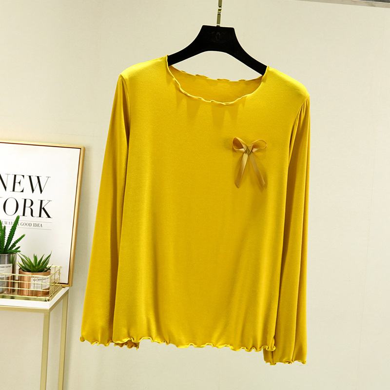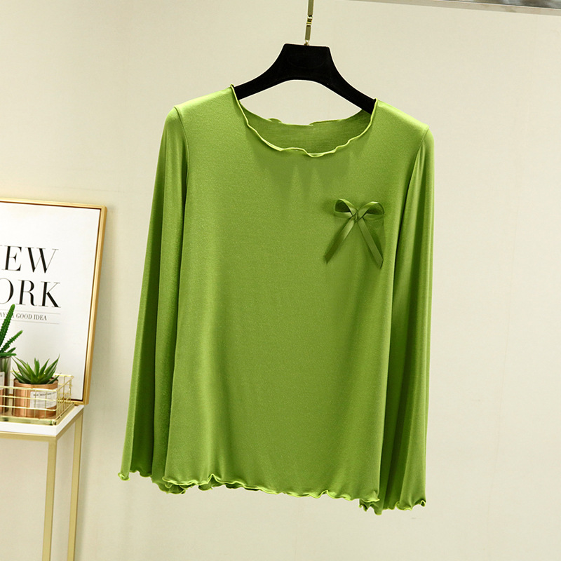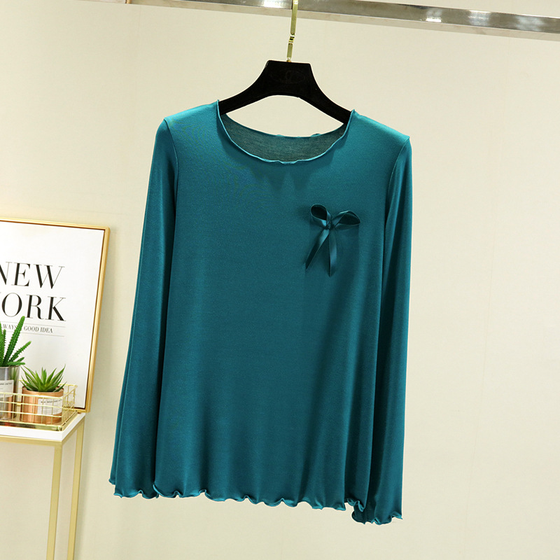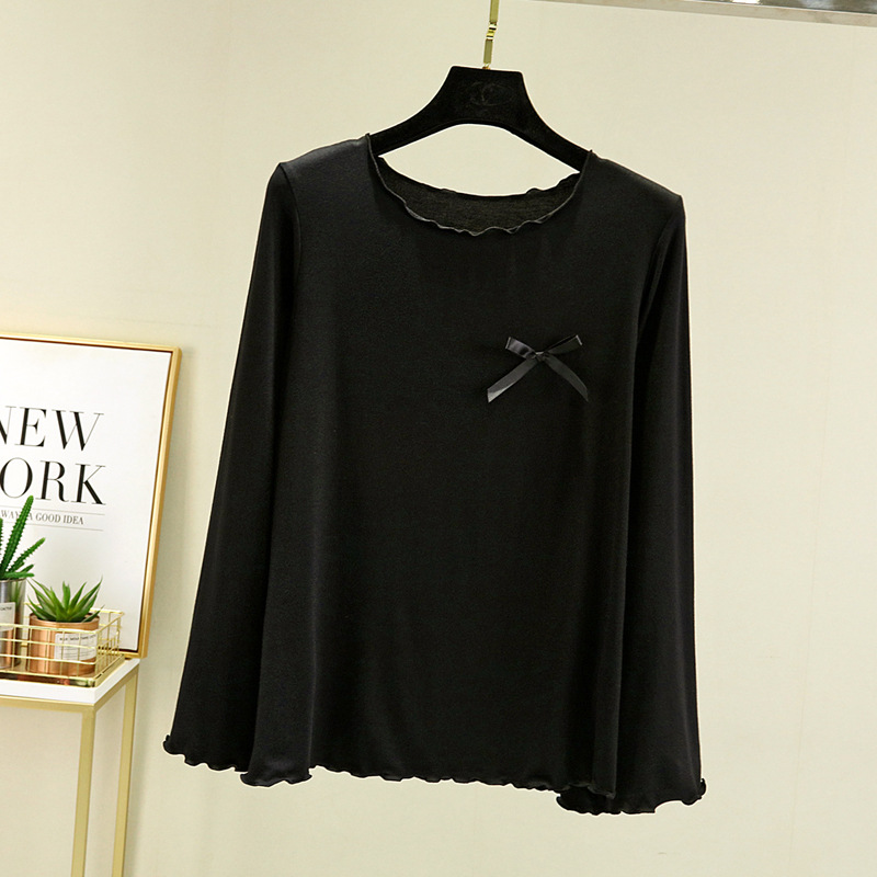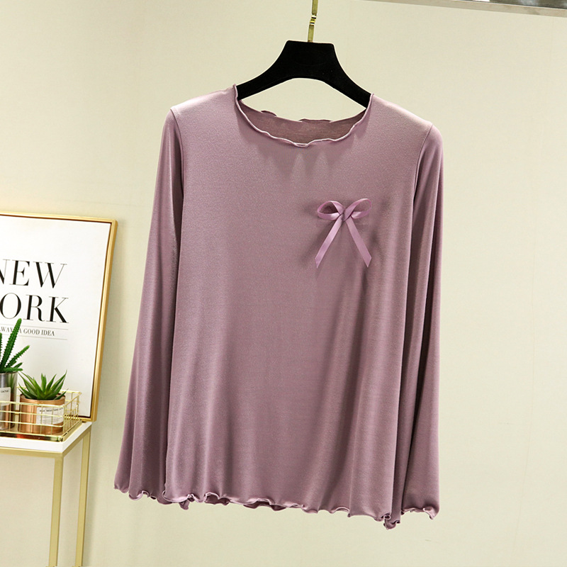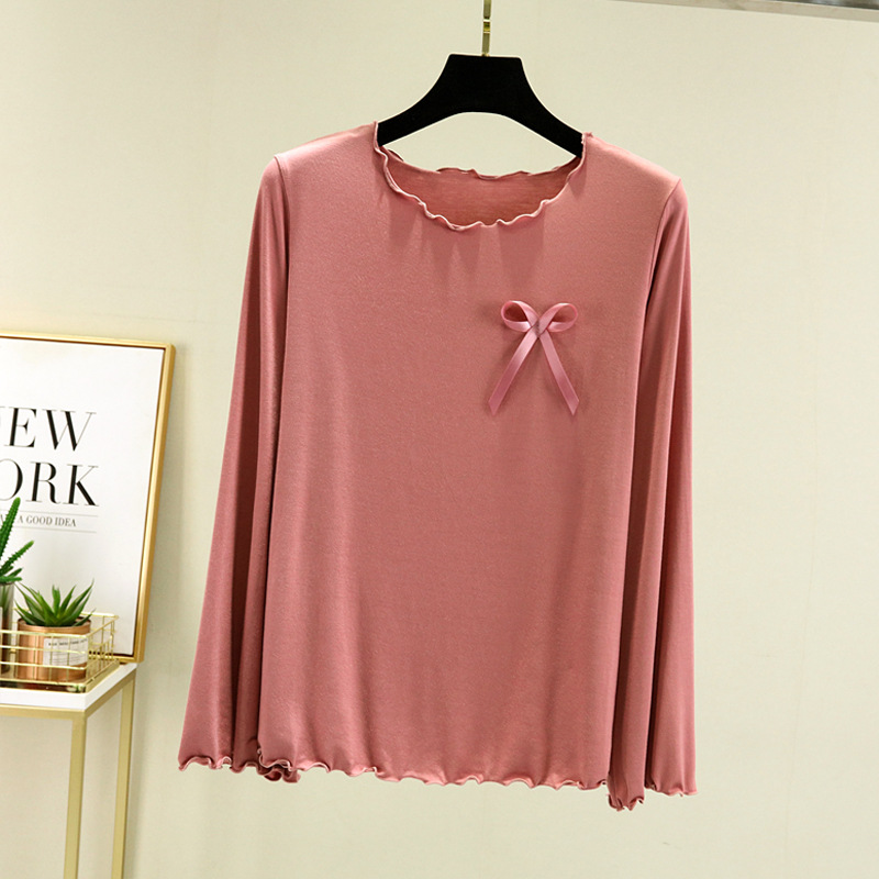 혼 슬리브 티셔츠 여성용 봄과 가을 의류 웨스턴 스타일 모든 매치 모달베이스 셔츠 느슨한 슬리밍 활 곰팡이 여성 의류스토어 가기