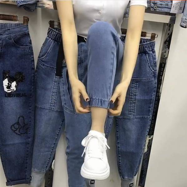 2026 여성용 데님 아빠바지, 신축성 있는 하이웨이스트, 큰 사이즈, 루즈핏, 슬리밍 효과, 워크웨어 바지, 발목까지 오는 하렘 랜턴 팬츠