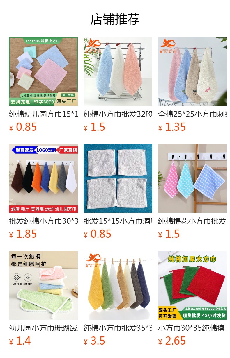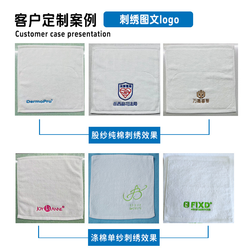 도매면 흰색 작은 사각형 면화 30*30 호텔 취사 광장 유치원 작은 수건 자수 로고스토어 가기
