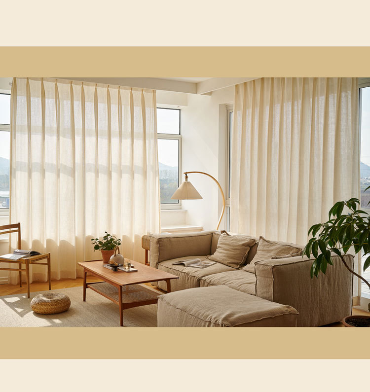커튼 거즈 커튼 투명 불투명 사람들 조용한 바람 발코니 베이 창 고급 흰색 거즈 프랑스 크림 2022 새로운