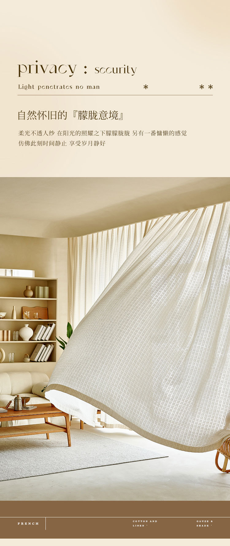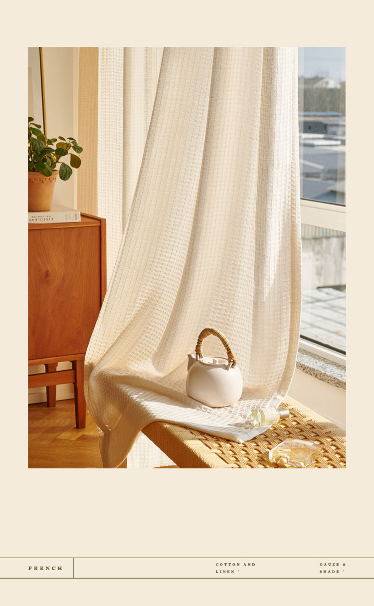 커튼 거즈 커튼 투명 불투명 사람들 조용한 바람 발코니 베이 창 고급 흰색 거즈 프랑스 크림 2022 새로운스토어 가기