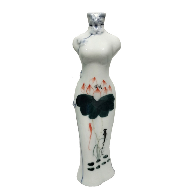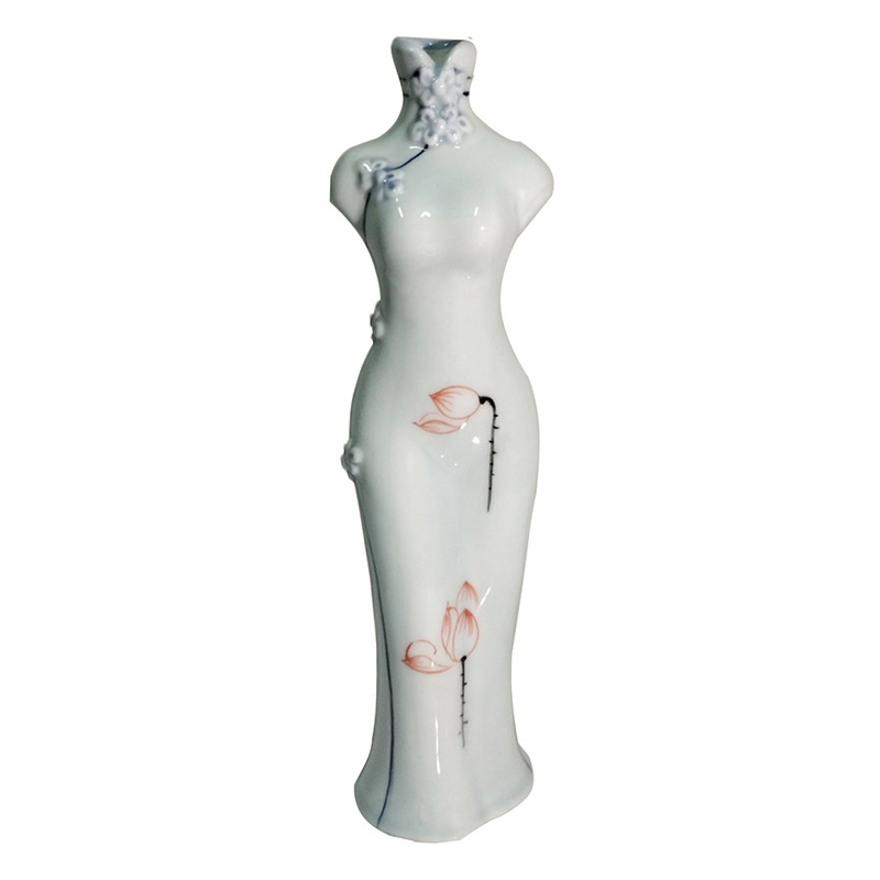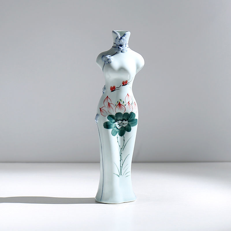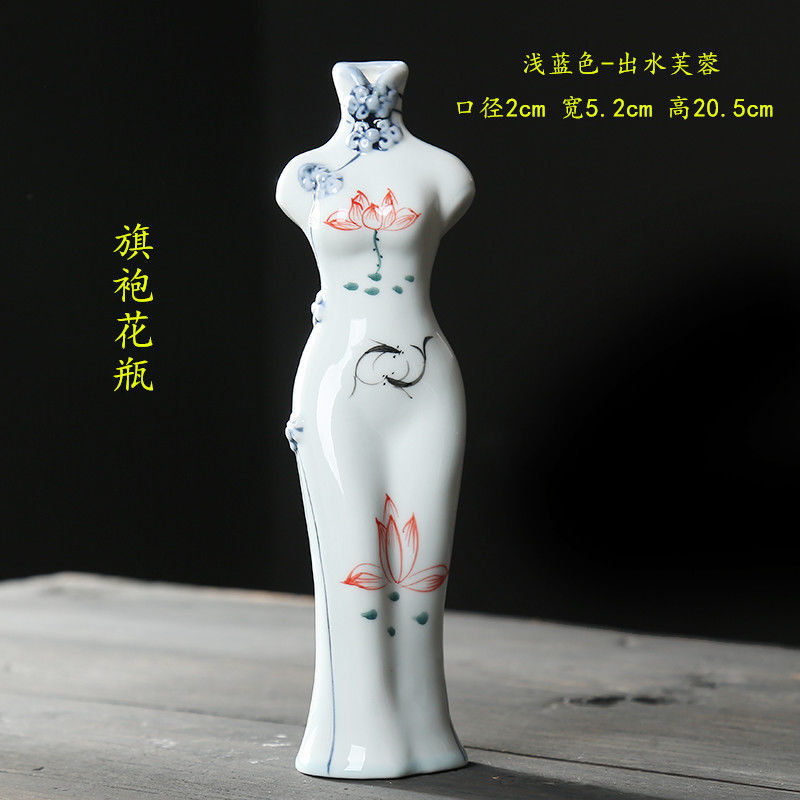 청자 중국 스타일 당나라 세트 치파오 손으로 그린 꽃병 세라믹 꽃 삽입 말린 꽃 수경 꽃 가정용 데스크탑 장식 장식품