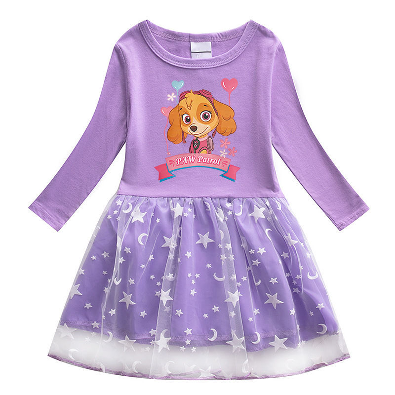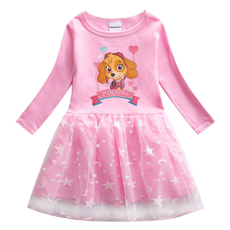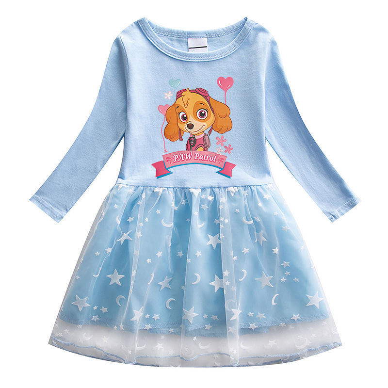 왕 왕 팀 만화 인쇄 여자 긴 소매 라운드 넥 원피스 2022 봄과 가을 새로운 메쉬 공주 치마스토어 가기
