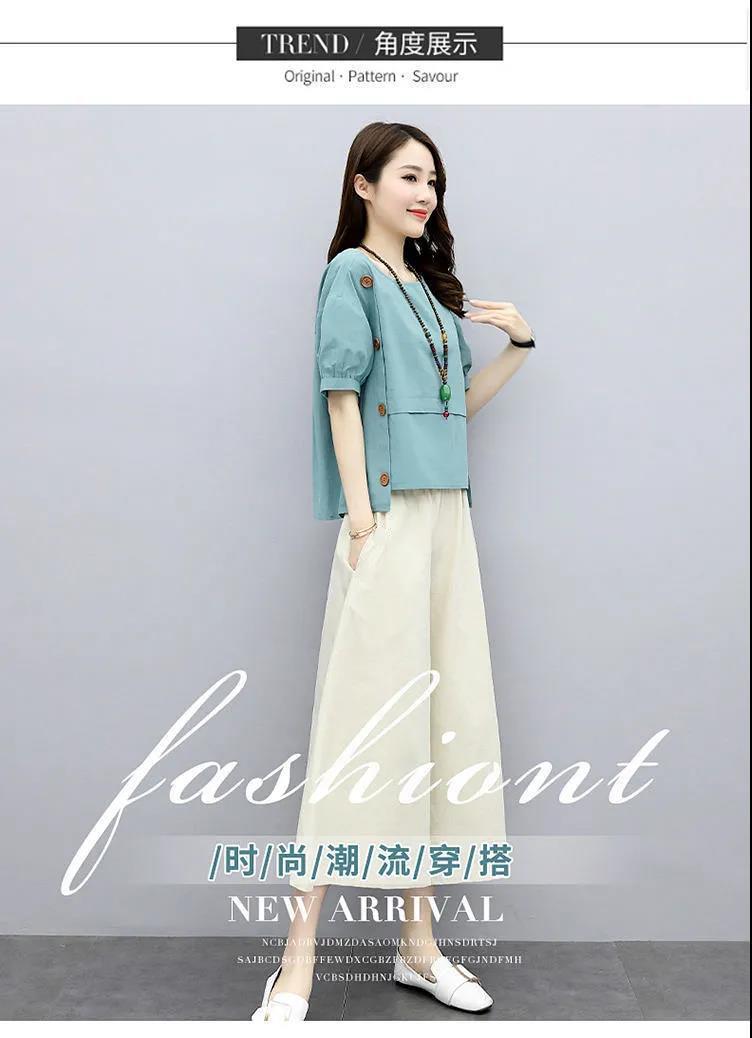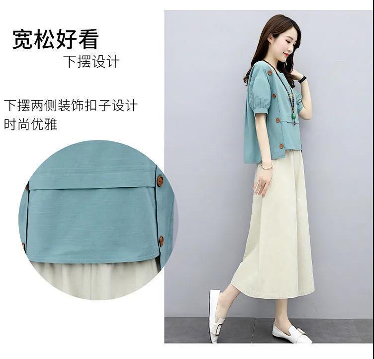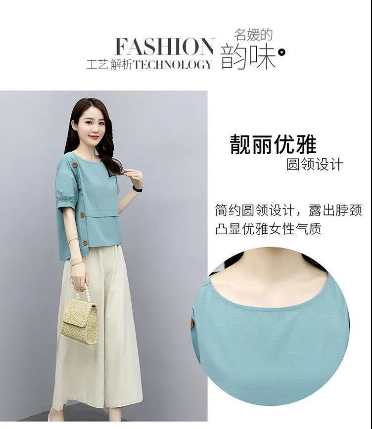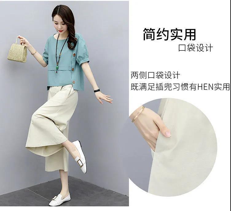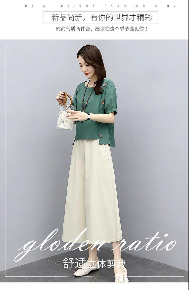 宽松两件套短袖夏装2022新款女装时尚洋气减龄阔腿裤套装宽松显瘦