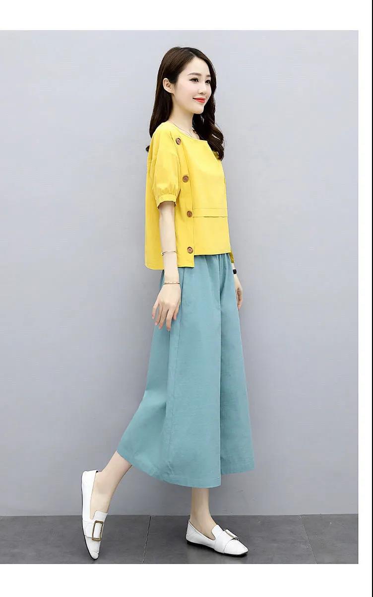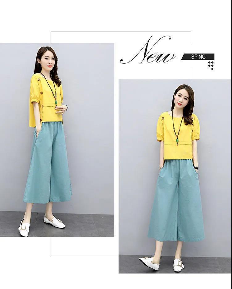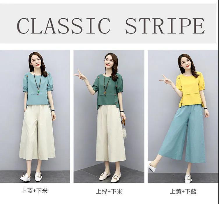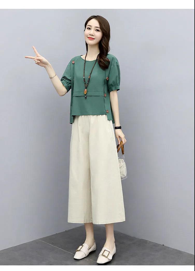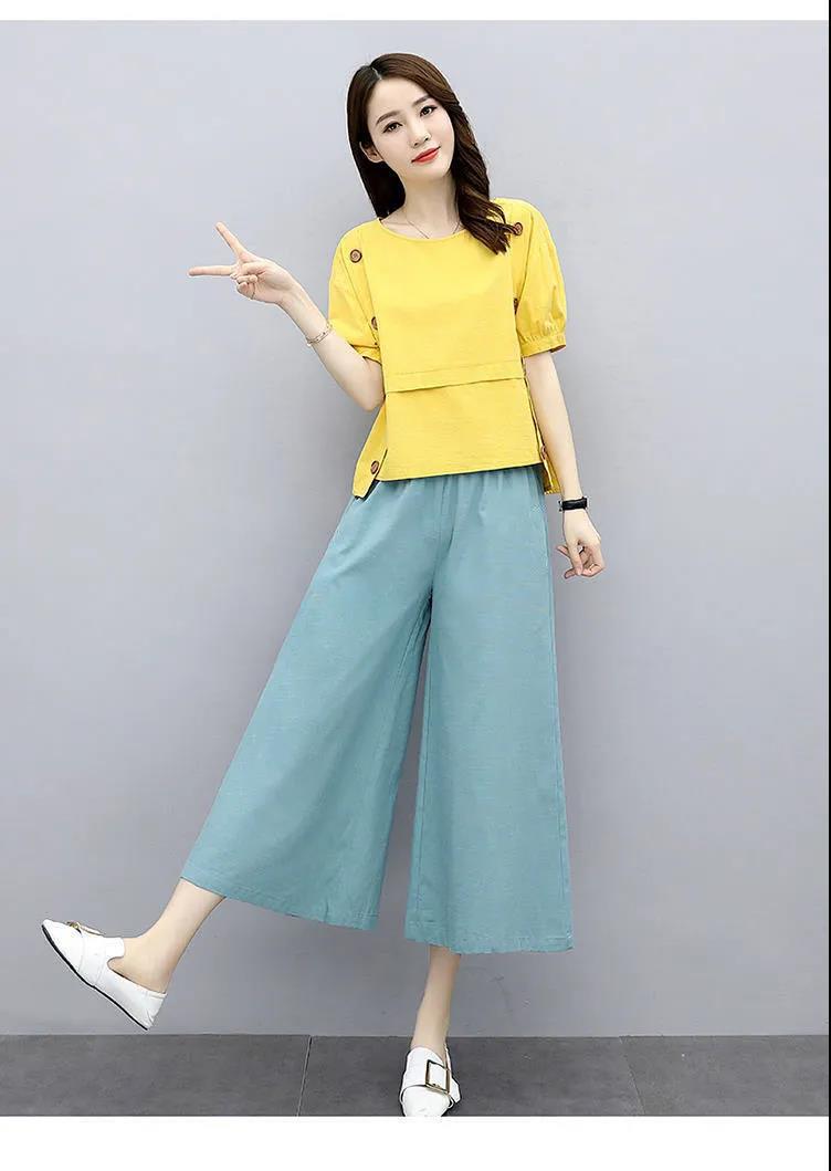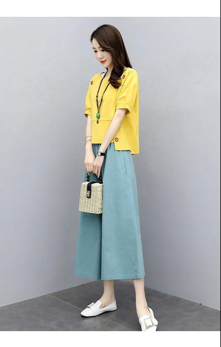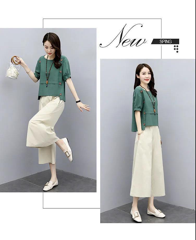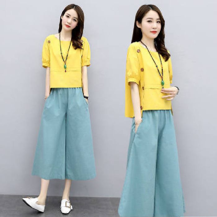 루즈핏 투피스 반팔 여름옷 2025 신상 여성 패션 스타일리쉬하고 젊어보이는 와이드 팬츠 세트 루즈핏 슬림핏