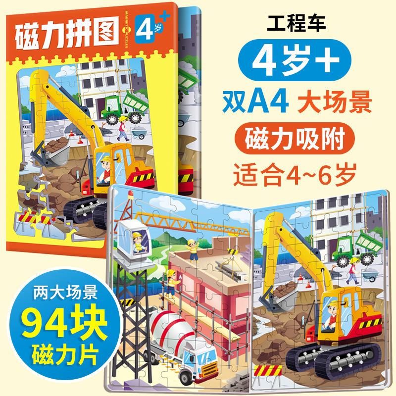 • 마그네틱 퍼즐-4 년 된 건설 차량 (4-6 세에 적합)