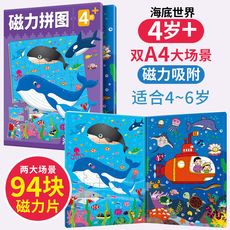 升级版磁力拼图,折叠书夹,收纳方便,磁力吸附不易散落,提高儿童手眼协调、逻辑思维、专注力、学习力和意志力,玩中学知识,让宝宝健康成长。