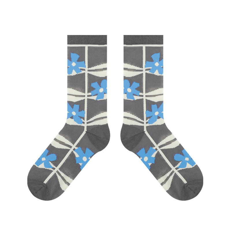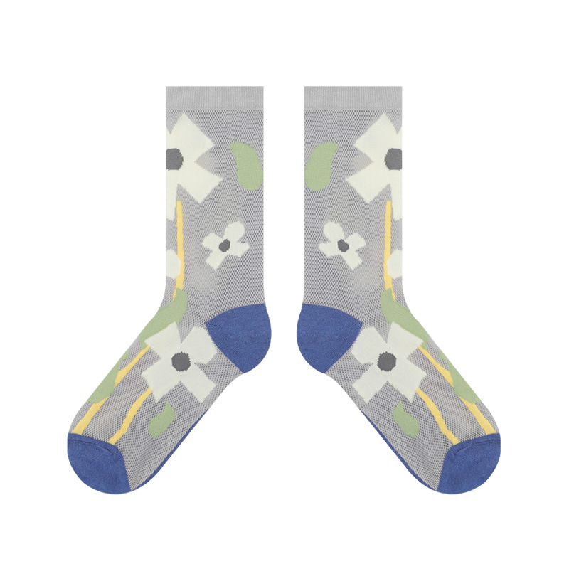 DAMAHOOV 오리지널 새로운 여름 얇은 꽃 면 양말 여성용 맞춤형 메쉬 통기성 트렌디 한 중간 길이 양말 작은 빨간 책스토어 가기