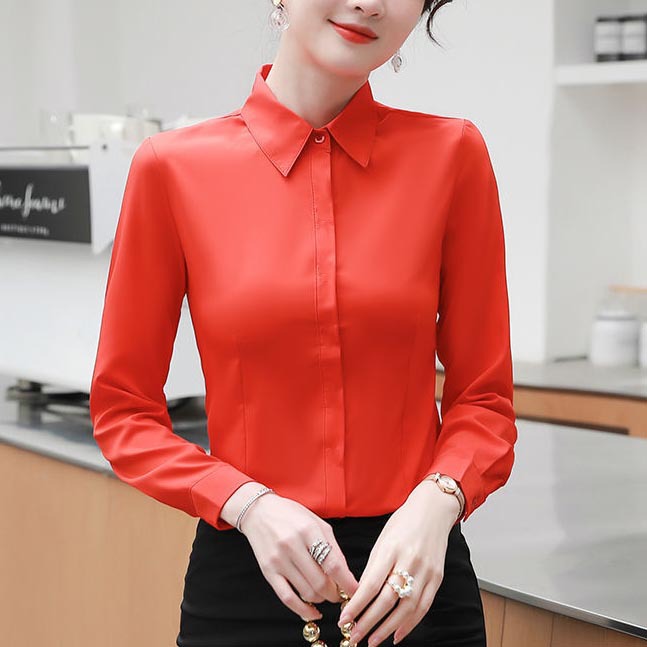 봄과 가을 새로운 블랙 화이트 셔츠 여성용 한국식 슬림핏 긴팔 작업복 셔츠 비즈니스 원피스 탑