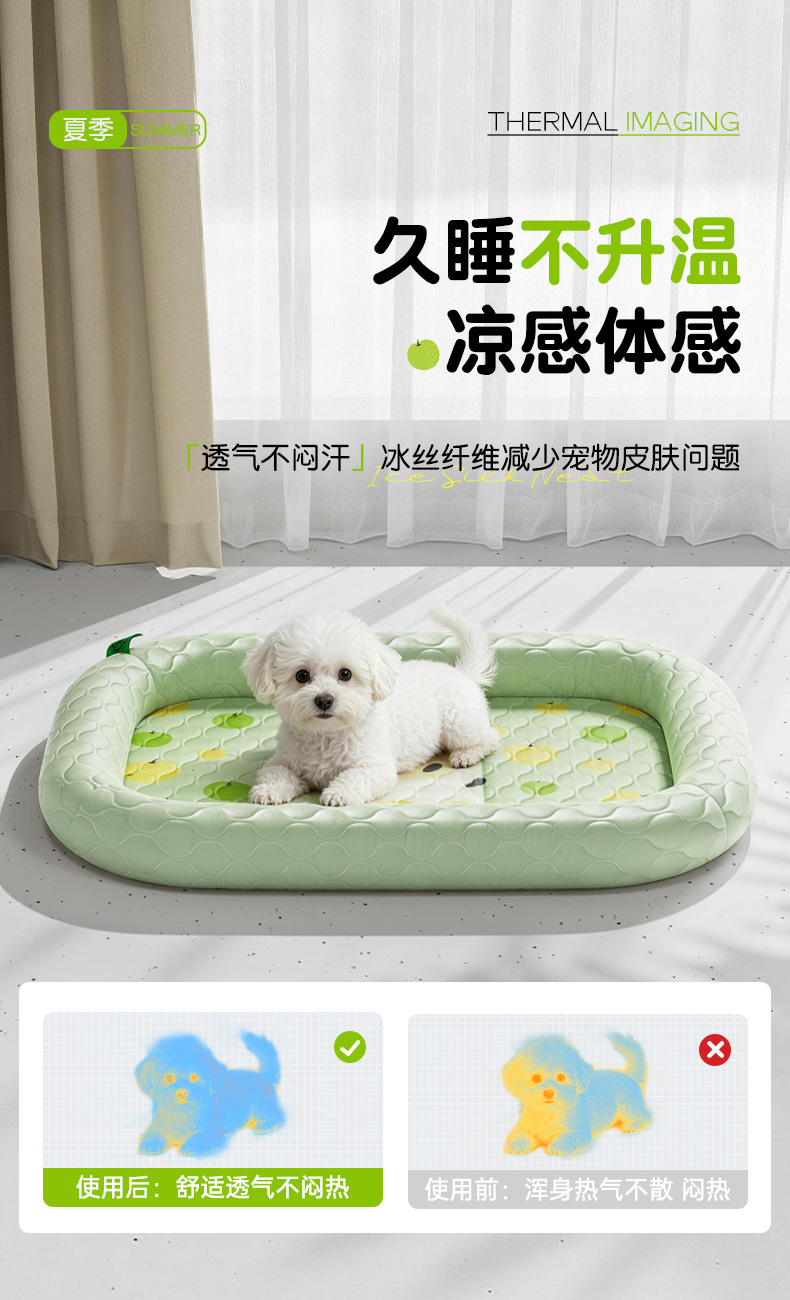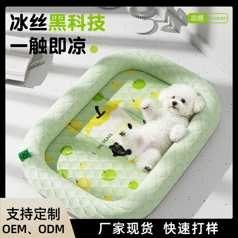 여름 고양이 침대, 만화같은 귀여운 아이스 실크 강아지 침대, 여름 통기성 냉각 수면용 목 보호 강아지 매트, 애완동물 아이스 패드스토어 가기