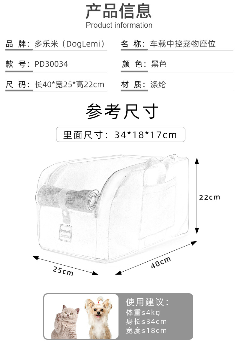 名称:车载笼中控猫狗笼汽车窝垫 便携式猫窝汽车座椅四季通用款猫狗宠物用品