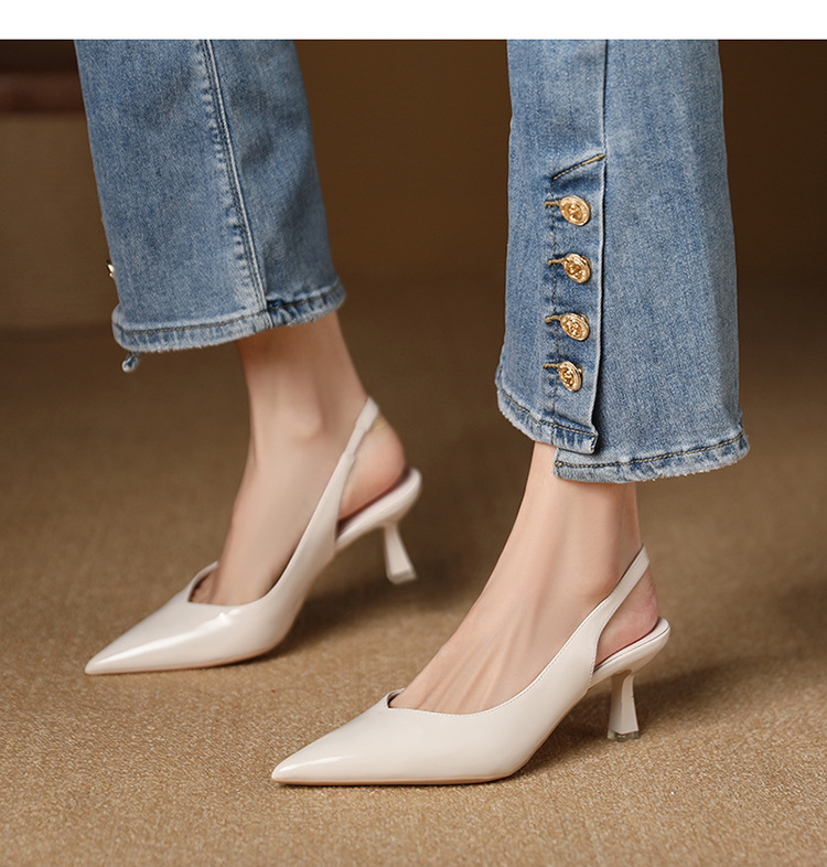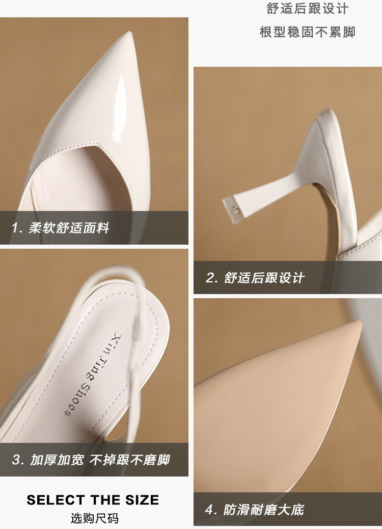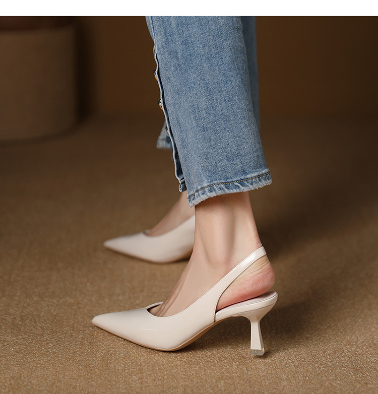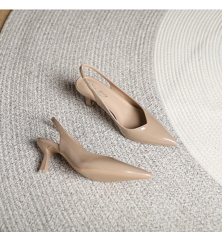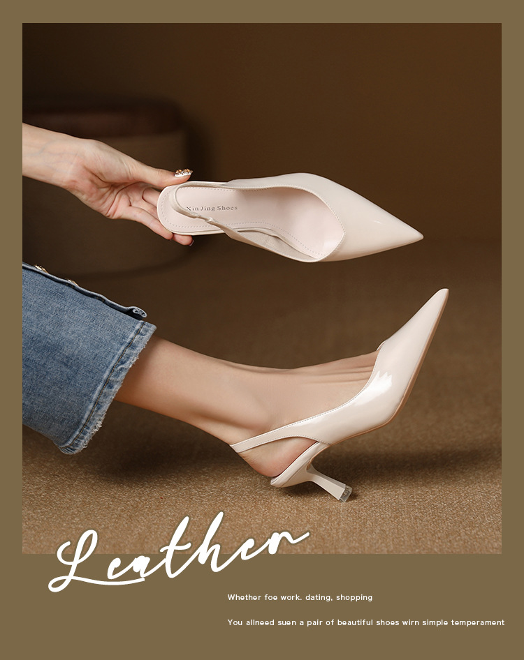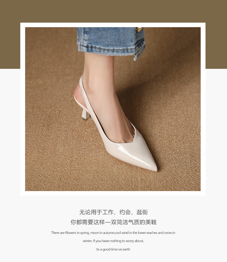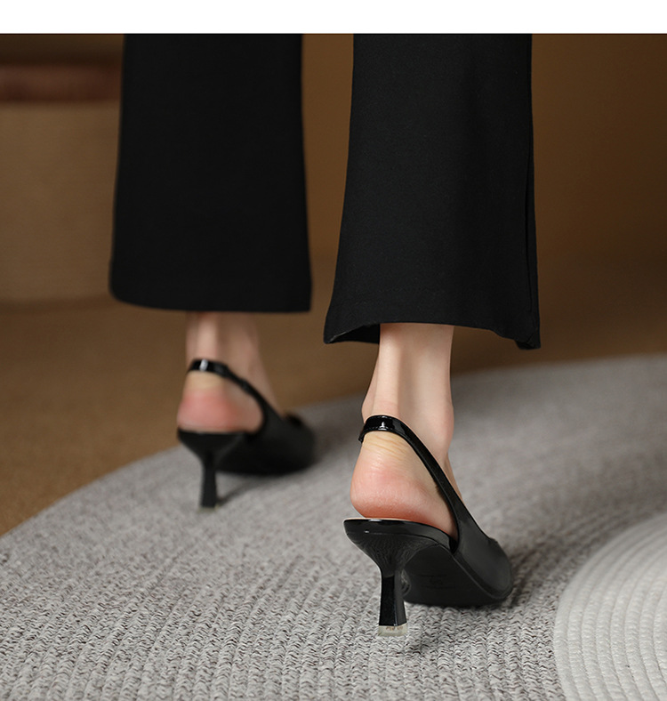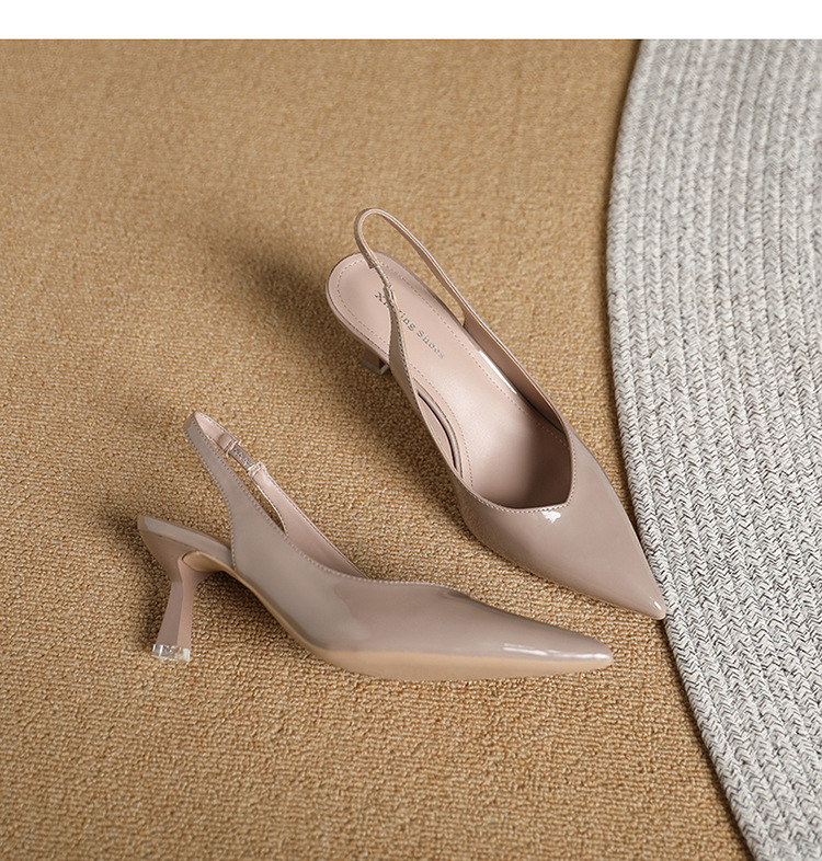 699-2 에나멜 가죽 포인티드 토 백 스트랩 싱글 슈즈 데일리 통근 작업화 한국식 심플 하이힐 35-43 사이즈