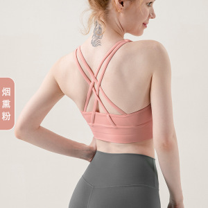 탈부착 가능한 패드가 있는 여성용 고강도 스포츠 브라, 크로스백 디자인으로 등이 아름다워 보이고, 누드 느낌의 피트니스 탑, 충격 방지 요가 브라스토어 가기