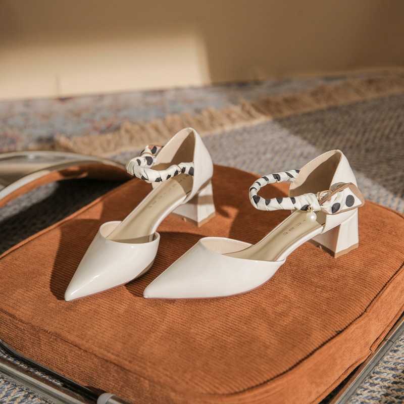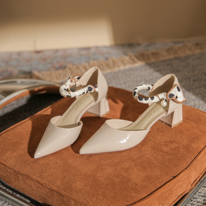 55806【양가죽】뾰족코 하이힐 여성용 두꺼운 굽 2026 여름 신상 진주 스트랩 중공형 구두스토어 가기