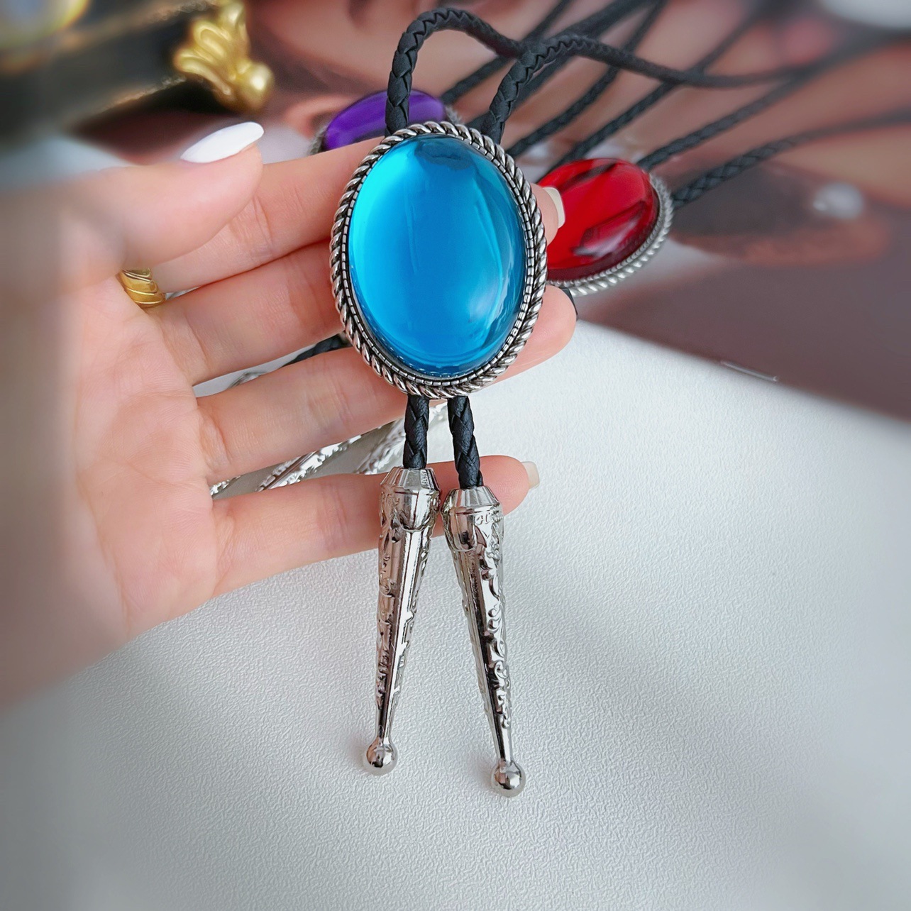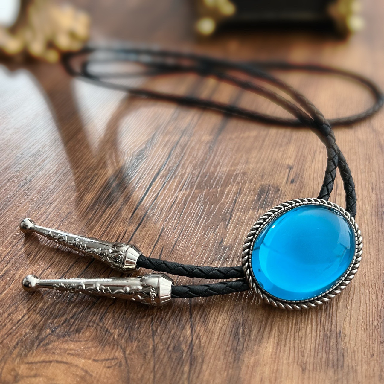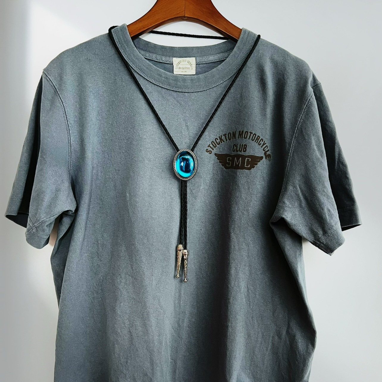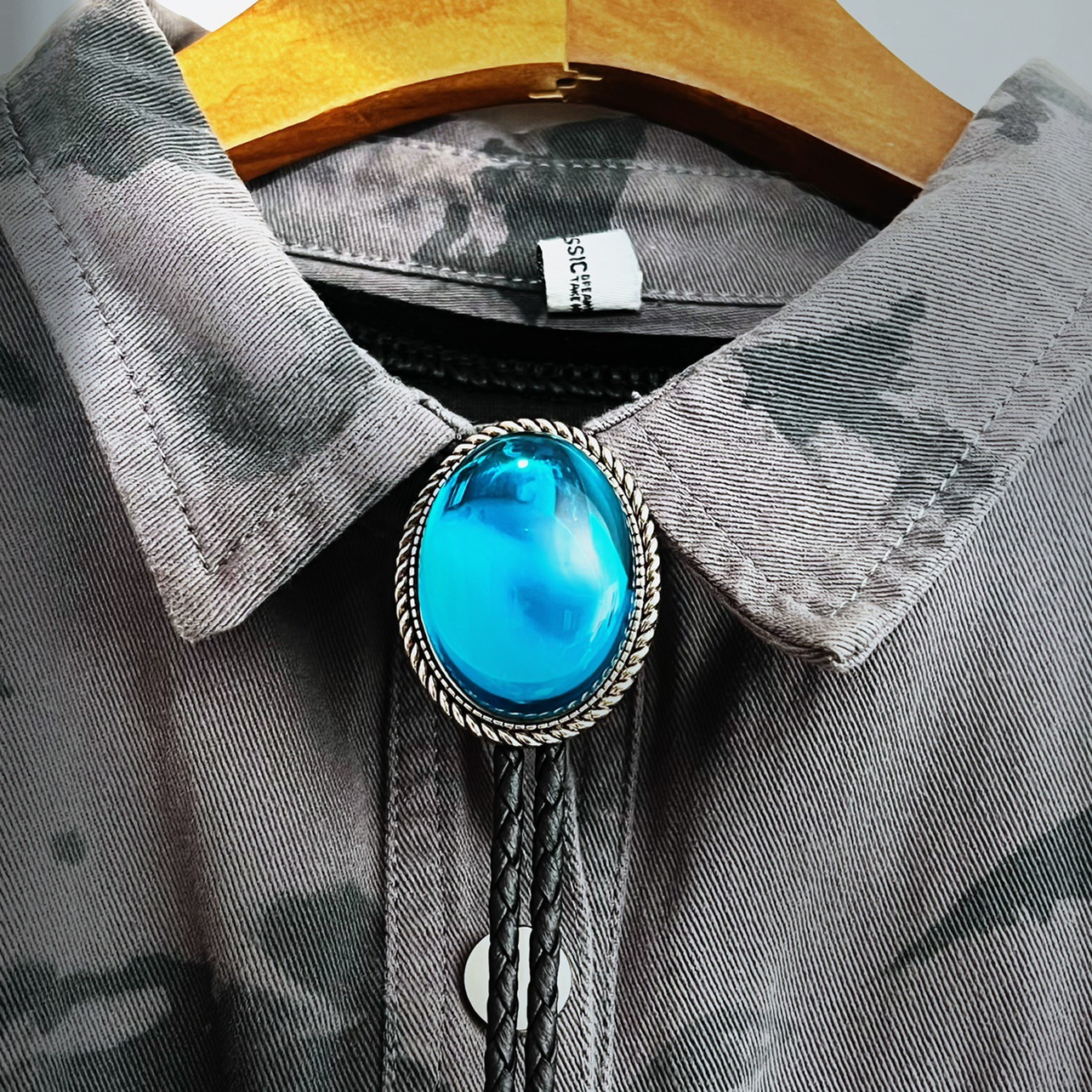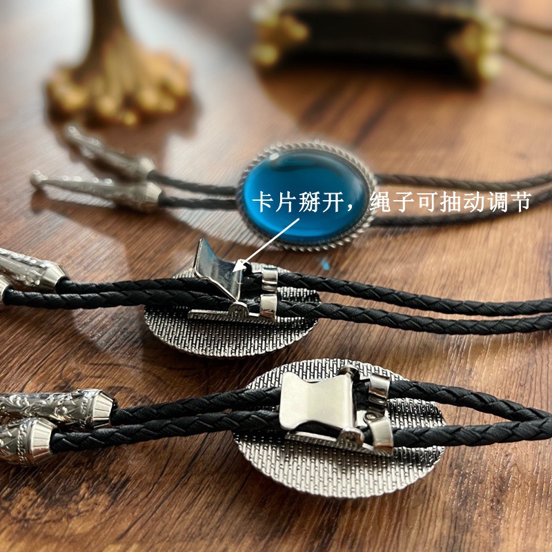 3BLD013 블루 웨스턴 데님 폴로 넥타이 캐주얼 티셔츠 액세서리 목걸이 유럽과 미국의 성격 칼라 bolo t스토어 가기