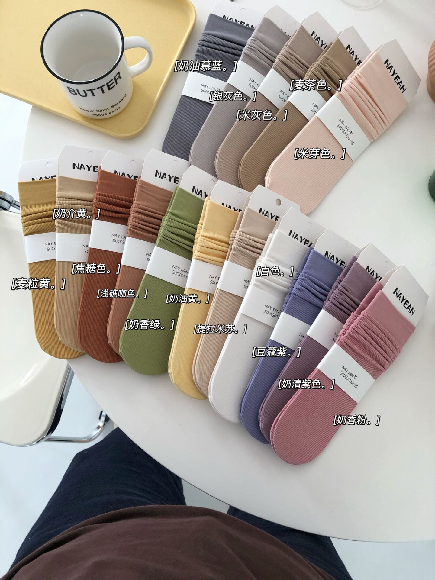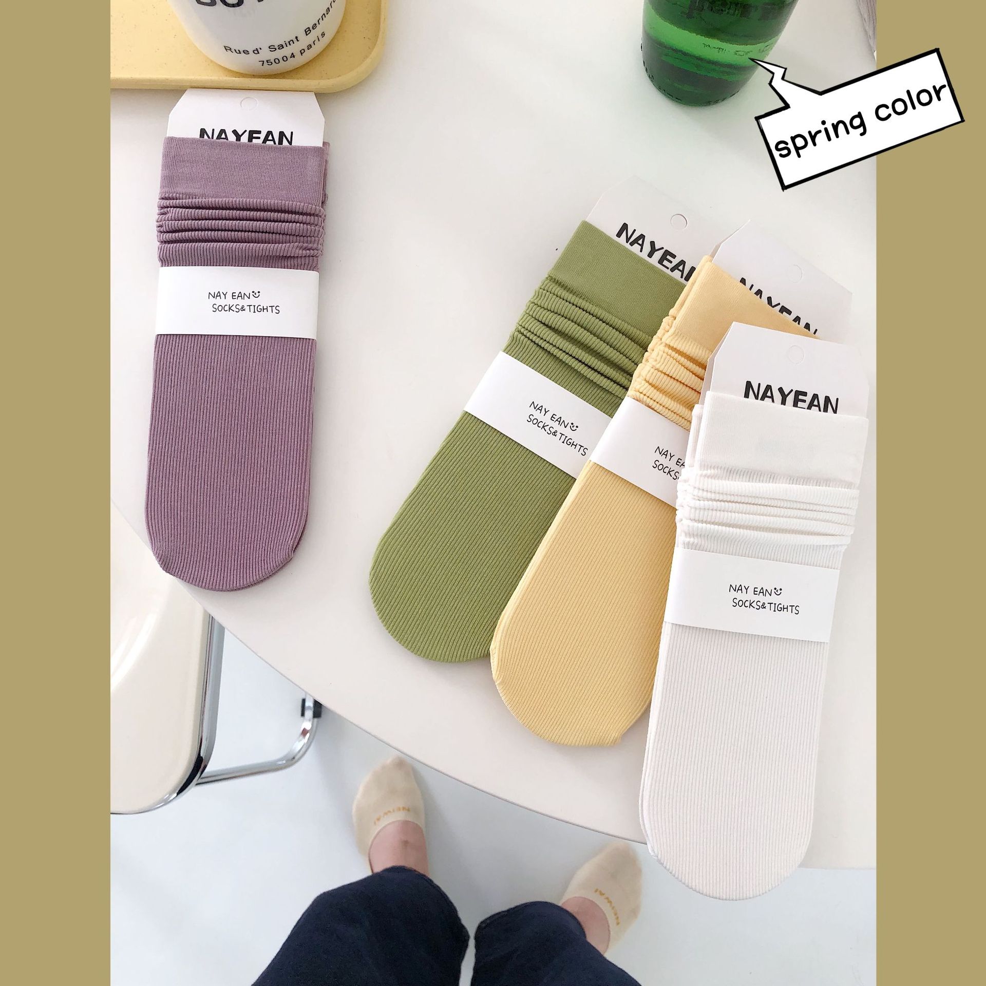 여름 단색 구덩이 스트라이프 스트레이트 플레이트 탄성 부모-자식 양말 한국 색상 봄 미드 튜브 양말 더미 여성 양말스토어 가기