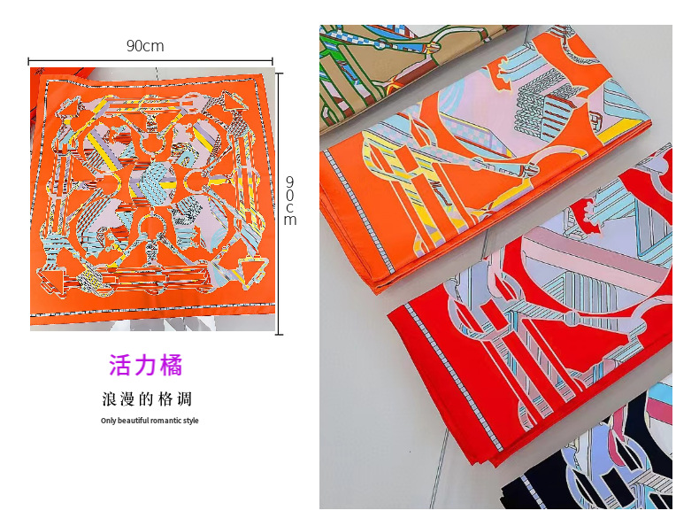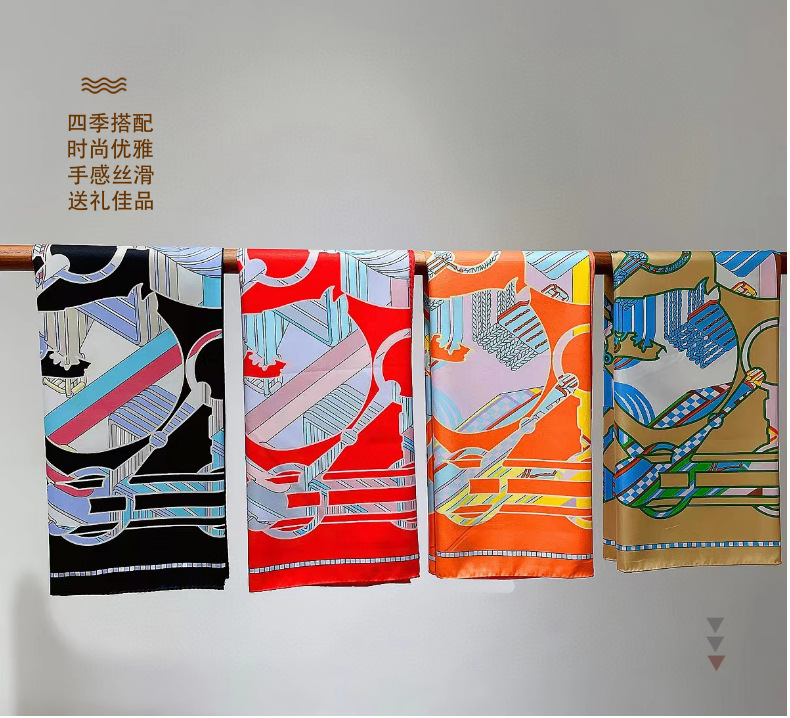 실크 스카프 여성용 뉴 90cm 헤드 스카프 수제 컬링 브랜드 인쇄 선 스크린 스카프 모조 실크 대형 스퀘어 도매스토어 가기