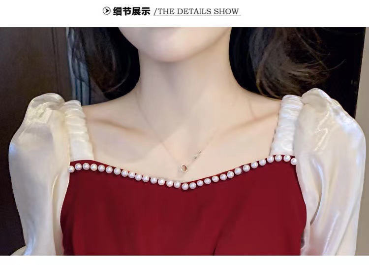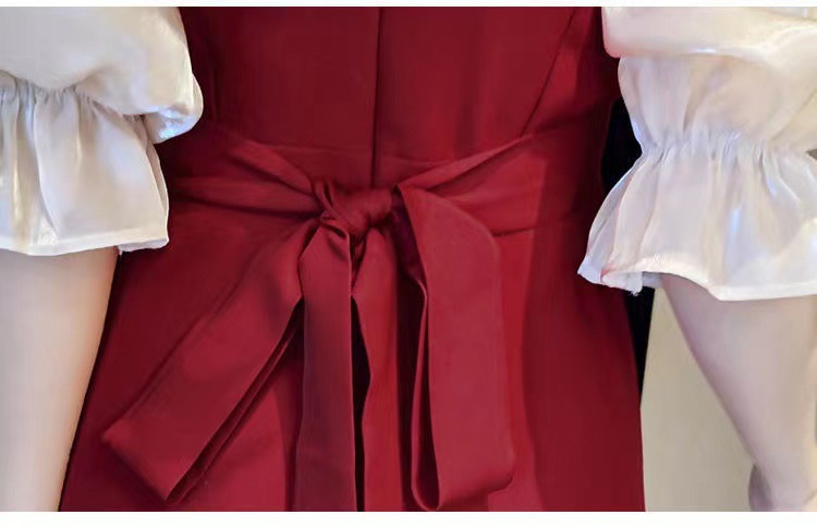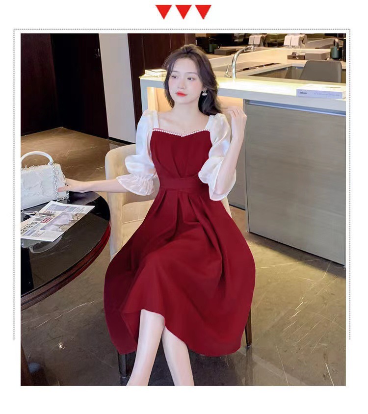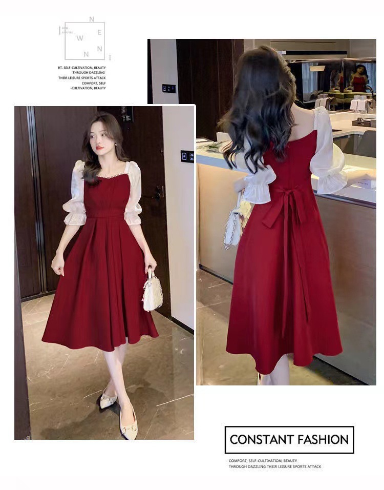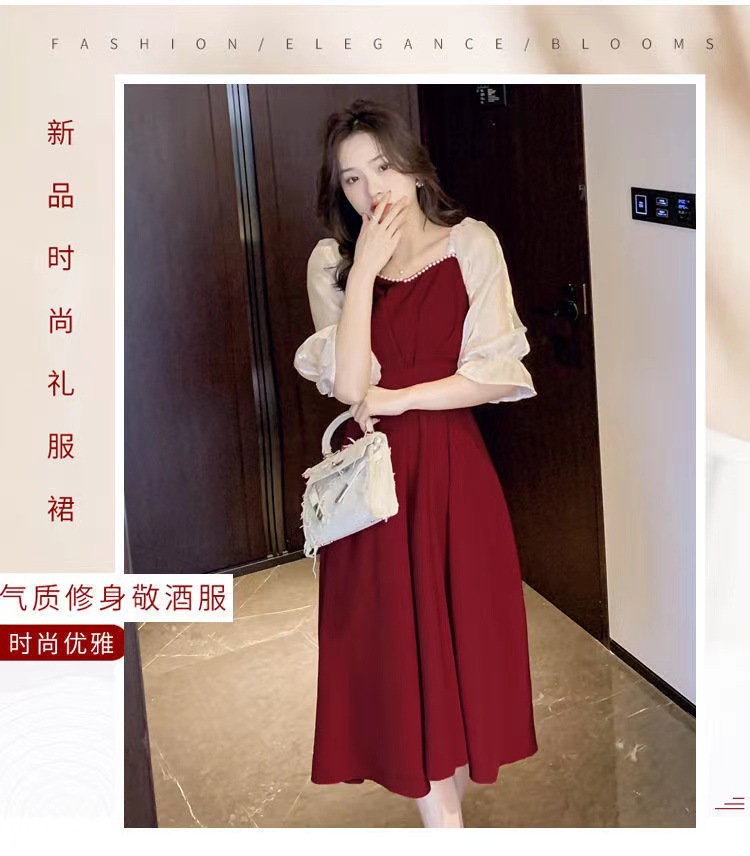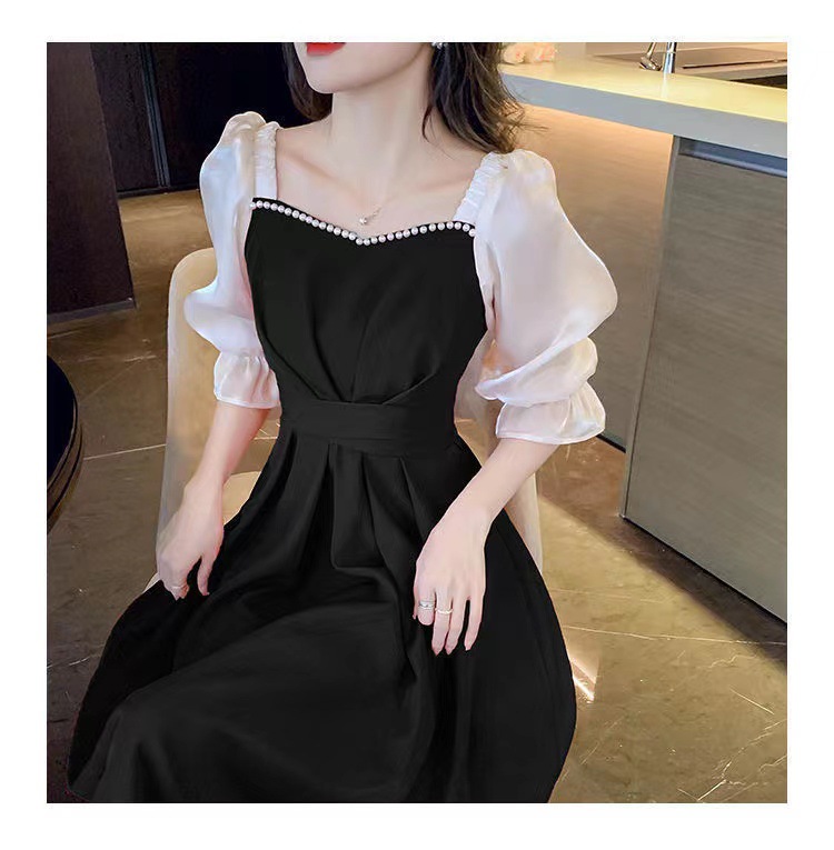 프랑스 단색 원피스 여자의 반팔 여름 크로스 보더 새로운 허리 슬리밍 중간 길이 공주 A 라인 스커트스토어 가기