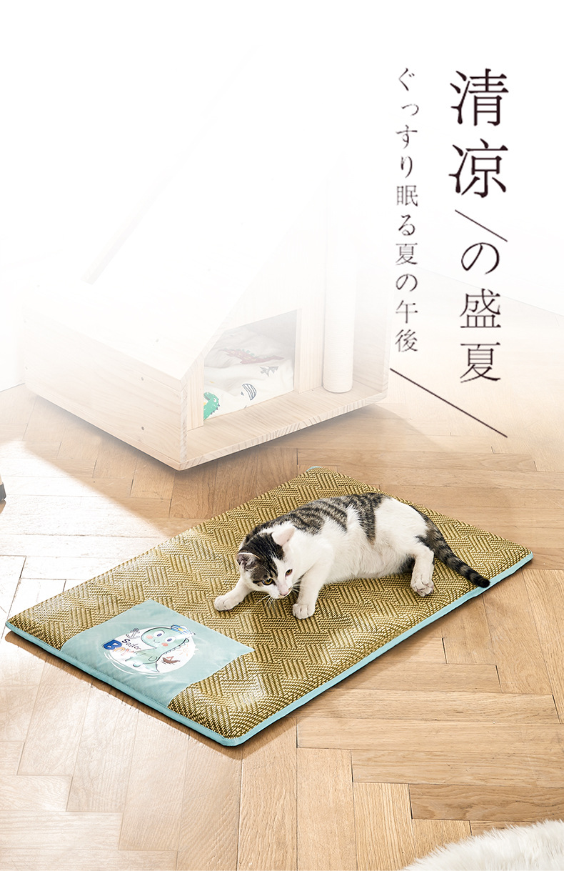 • 핑크 고양이 [멋진 등나무 매트 이동식 및 빨]]