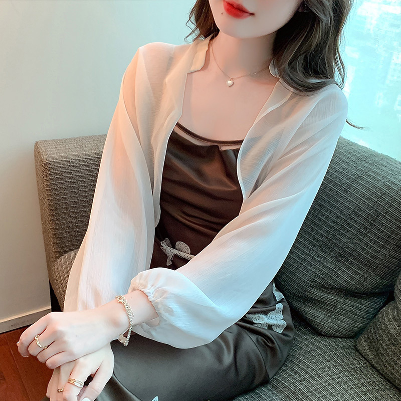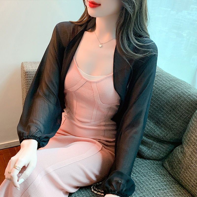 2025 봄과 여름 쉬폰 숄 카디건 짧은 얇은 봄, 여름 여성 자외선 차단 에어컨 셔츠 다목적 양복 조끼 재킷