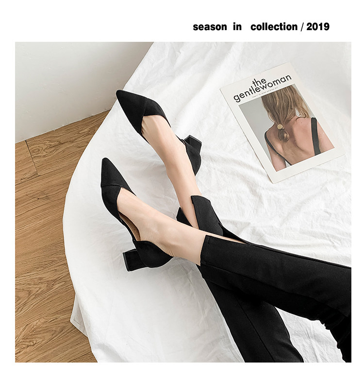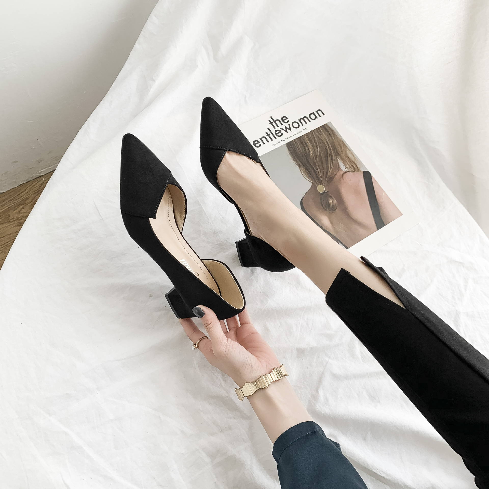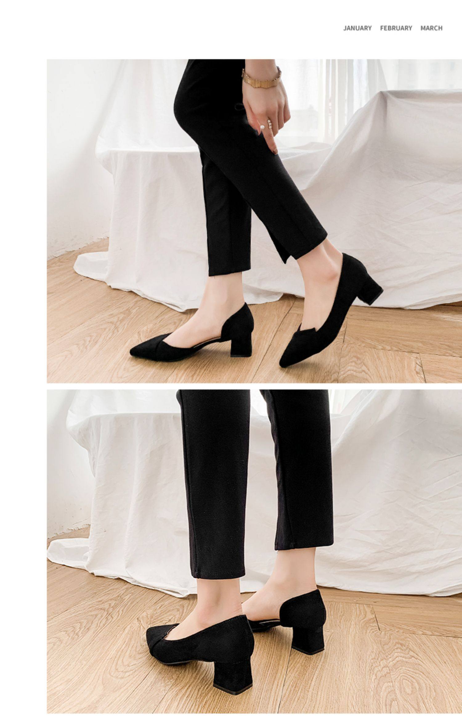 여성을위한 싱글 신발 2025 새로운 봄, 여름 지적 발가락 중간 발 뒤꿈치 두꺼운 발 뒤꿈치 작은 크기 하이힐 봄과 가을 대형 여성 신발스토어 가기