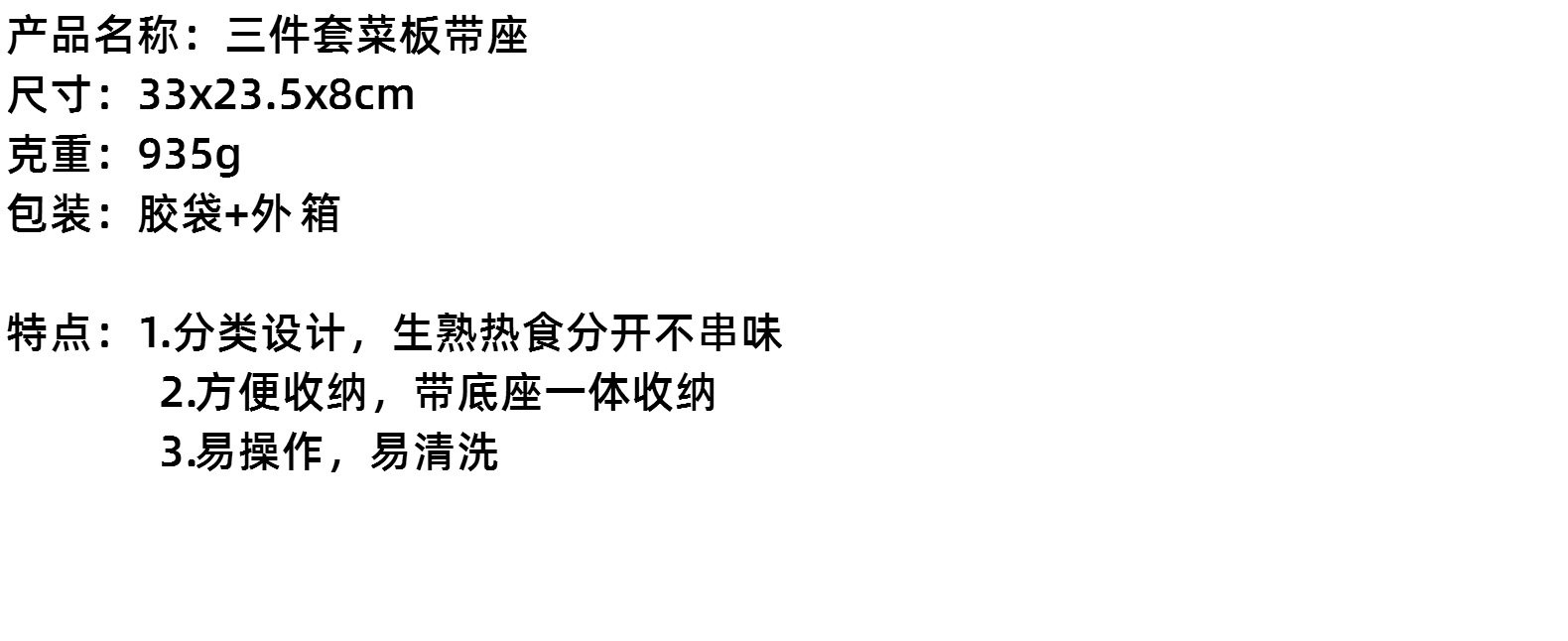 플라스틱 분류 도마 3 피스 주방 조리 식품 보충 식품 도마 도마 다기능 도마 세트