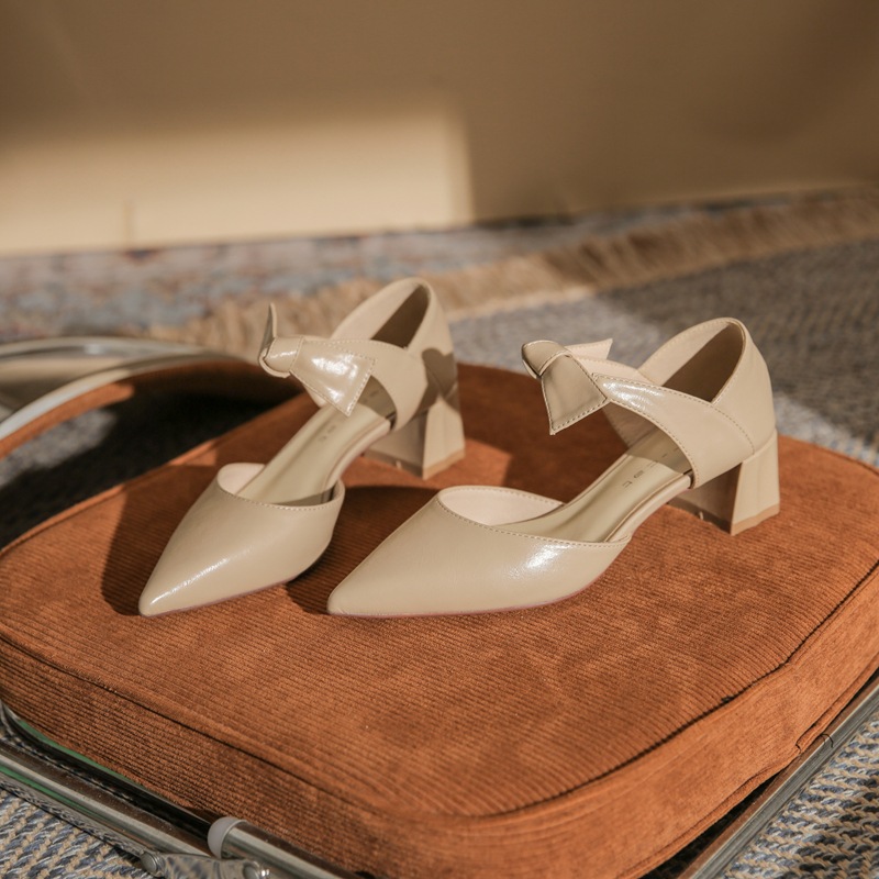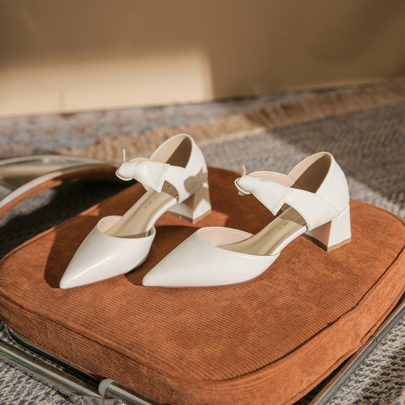 55802 [양가죽] 여성용 포인티드 토 하이힐, 2025년 신형 다용도 토캡 중공 두꺼운 굽 슈즈스토어 가기